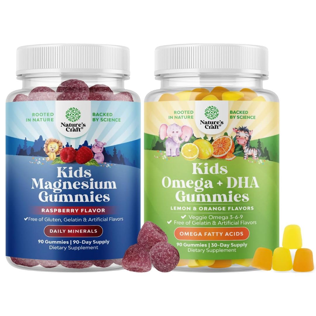 Natures Craft quality - We're proud to be a leading name in health supplements and we are committed to providing consumers like you with pure and responsibly-produced products you can trust. Plant Based Omega 3 Supplement - Our DHA gummies for kids are gelatin and fish free making it a top choice for your kids omega 3 supplement because we pack our formula with halal omega 3-6-9. Omega 3 for Kids - Omega 3 6 9 are essential nutrients that support healthy development for kids of all ages and our omega 3 gummy also includes high levels of DHA for kids for even more benefits. SUPPORTS RELAXATION, SLEEP MUSCLE FUNCTION – Magnesium plays a crucial role in nervous system regulation. Our calm magnesium gummies help to reduce stress, support relaxation, improve sleep quality, and promote healthy muscle and healthy heart function for growing kids. DELICIOUS MAGNESIUM FOR KIDS – Specially formulated for children, these tasty raspberry-flavored magnesium calm gummies provide essential calm and relaxation support, helping to promote overall wellness, balanced energy, and a positive mood.