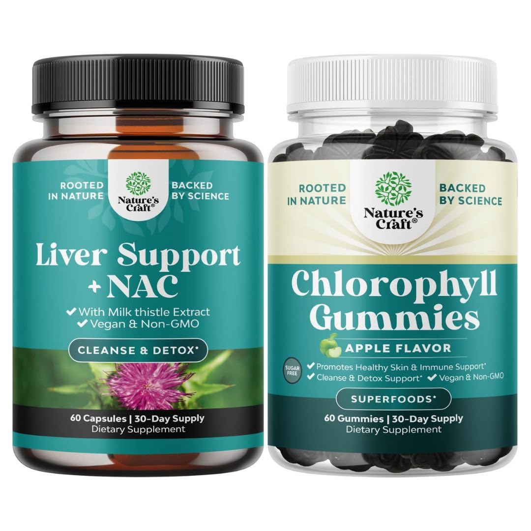 Natures Craft quality - We're proud to be a leading name in health supplements and we are committed to providing consumers like you with pure and responsibly-produced products you can trust. BODY ODOR SKIN CLARITY SUPPORT - These chlorophyll supplements are formulated to assist with body odor by supporting your body's natural detox function. Our internal deodorant gummies may promote clearer skin and digestive regularity through internal cleansing. DAILY DETOX SUPPORT IN A GUMMY - Our pure chlorophyll gummies for women men offer a refreshing way to support your body's natural cleansing process. Designed for adults seeking plant-based internal balance, these gummies help maintain freshness from within, all in a convenient chewable format. Enhanced liver care - We developed our liver capsules for adults with n acetyl cysteine for the best liver support because our livers form a huge part in our overall health and deserve the extra love. Liver health supplement - Experience the power of our all new liver health formula with NAC featuring liver vitamins minerals and herbs such as n-acetyl cysteine beet root chanca piedra and more.