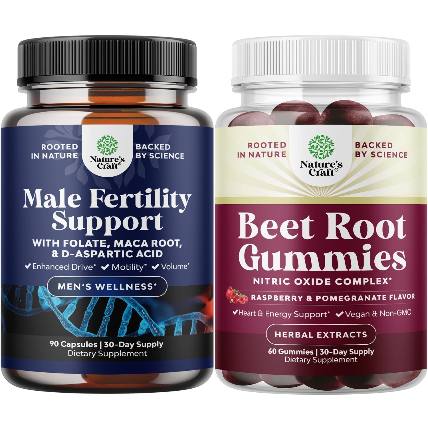 Natures Craft quality - We're proud to be a leading name in health supplements and we are committed to providing consumers like you with pure and responsibly-produced products you can trust. Delicious and Nutritious - Our nitric oxide beet gummies make it easier than ever to get the benefits of this superfood without the harsh taste so upgrade your health and wellness regimen today. Nitric Oxide Boost - Reap the benefits of enhanced flow with our vegan nitric oxide gummies for men made with invigorating beetroot extract plus pomegranate and grape seed for daily support. BOOST VITALITY REPRODUCTIVE HEALTH – These advanced mens fertility vitamins help improve sperm count, quality motility while supporting male reproductive health. Feel empowered to take charge of your fertility with a proven conception for him formula. SUPPORT MALE FERTILITY WITH CONFIDENCE – Designed for men preparing to conceive, our pre-conception male fertility supplement is formulated to enhance sperm health, motility, and volume, giving you the extra support needed during this important journey.