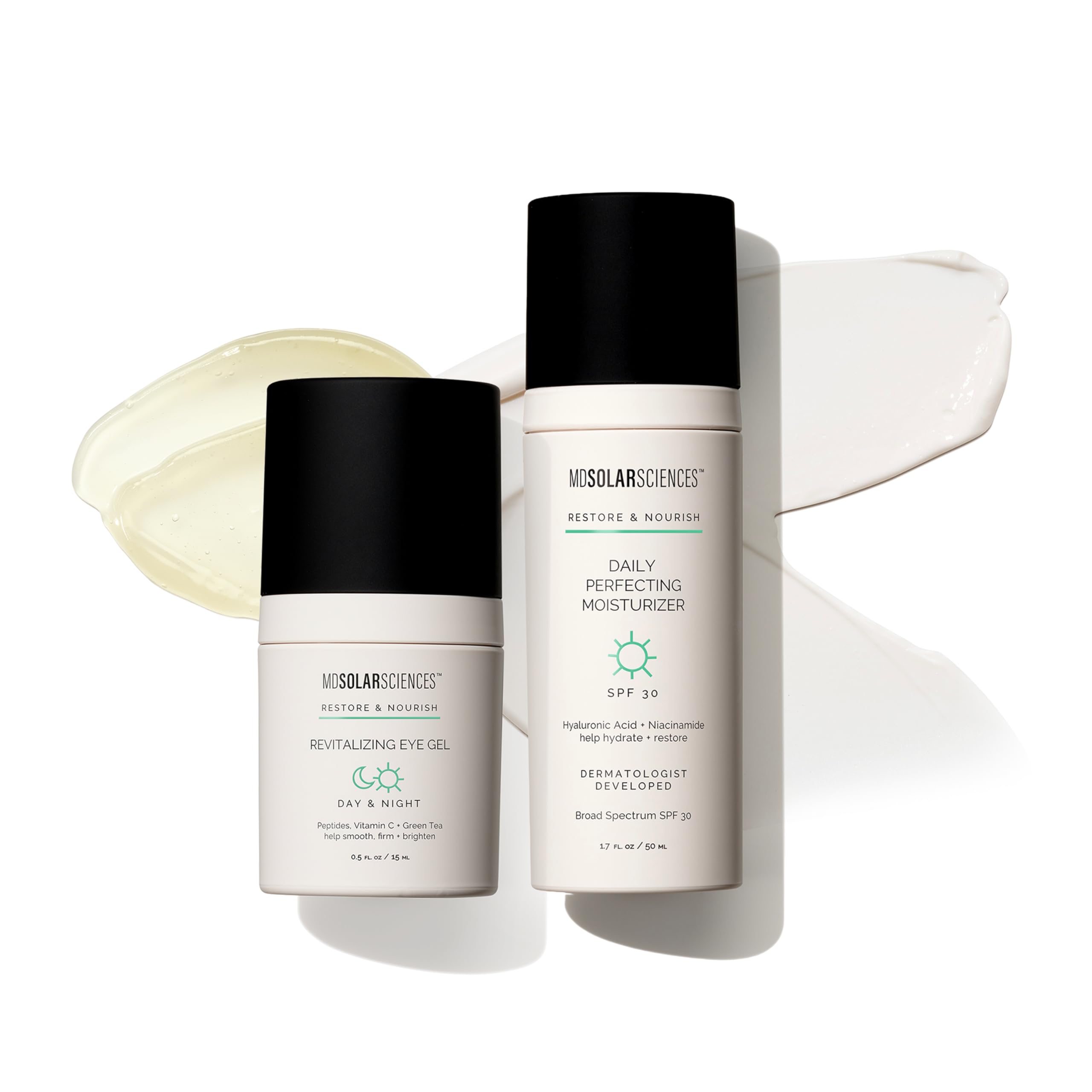 Bundle of MDSolarSciences Daily Perfecting Moisturizer SPF 30 & Revitalizing Eye Gel | Anti-Aging Morning Skincare Routine | Hyaluronic Acid Peptides | Brightens & Reduces Dark Circles Wrinkles