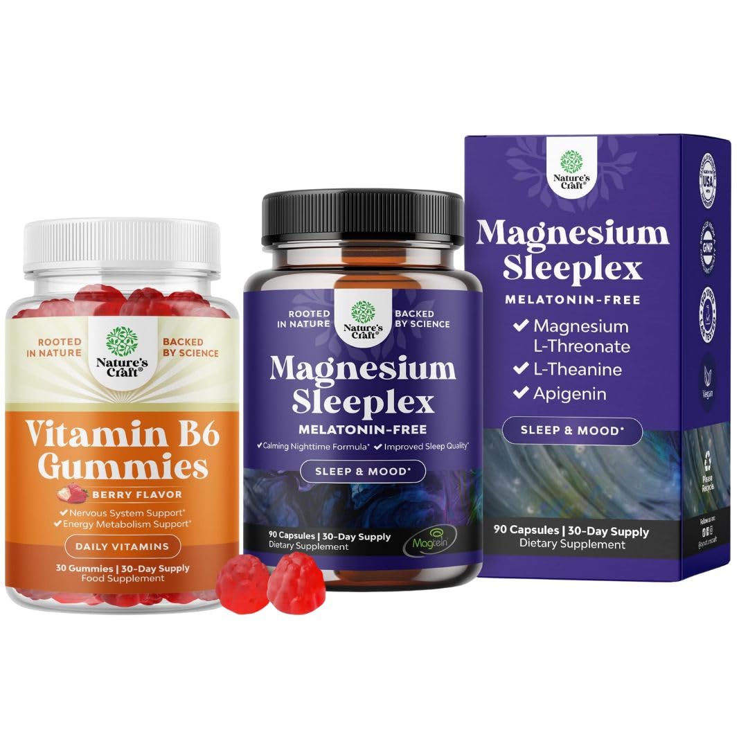 Natures Craft quality - We're proud to be a leading name in health supplements and we are committed to providing consumers like you with pure and responsibly-produced products you can trust. SUPPORTS MOOD, SLEEP COGNITIVE FUNCTION – Our magnesium supplement for women men is designed to help you fall asleep faster, stay asleep longer wake up refreshed. This natural magnesium sleep aid also supports mood balance, relaxation, memory, and cognitive clarity for both men and women. ADVANCED MAGNESIUM SLEEP RELAXATION SUPPORT – Our magnesium supplement for sleep is formulated to promote deep, restful sleep and relaxation. This high-absorption tri magnesium supplement helps calm the mind, ease stress improve overall sleep quality without melatonin. MOOD, ENERGY NERVOUS SYSTEM SUPPORT – B6 vitamins play a vital role in maintaining a healthy nervous system, promoting mood supporting energy. These vitamin B6 50mg gummies help balance hormones, ease PMS symptoms like bloating cramps, and contribute to a stronger immune response. POTENT VITAMIN B6 GUMMIES FOR ADULTS – Our Vitamin B6 for women men gummies are specially formulated to support energy, mood metabolism. Packed with Pyridoxine B6, these delicious vegan gummies promote overall well-being while offering a convenient, chewable alternative to traditional pills.