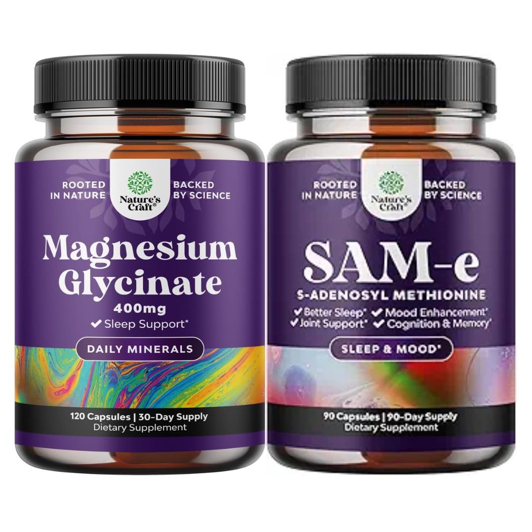 Natures Craft quality - We're proud to be a leading name in health supplements and we are committed to providing consumers like you with pure and responsibly-produced products you can trust. PROMOTES MOOD EMOTIONAL BALANCE – SAM-e is known for its role in producing neurotransmitters like serotonin, dopamine norepinephrine, which are essential for maintaining emotional balance and reducing stress. This l-methionine with SAMe helps your mood stability, mental clarity relaxed focus. PURE SAM-e 150mg FOR BRAIN, MOOD JOINT SUPPORT – Experience the power of SAMe supplement 150 mg per serving, a natural nootropic designed to support brain health, mood balance joint comfort. This versatile supplement promotes liver health and promotes cognitive function for overall well-being. Magnesium Mineral Supplements - Enhance your wellness with magnesium 400 mg for one of the most versatile minerals which may help improve the body's natural process and support immunity. Extra Strength Magnesium for Sleep - Try our chelated magnesium for sleep so you can rest better and wake up more refreshed thanks to the relaxing properties of this essential mineral.
