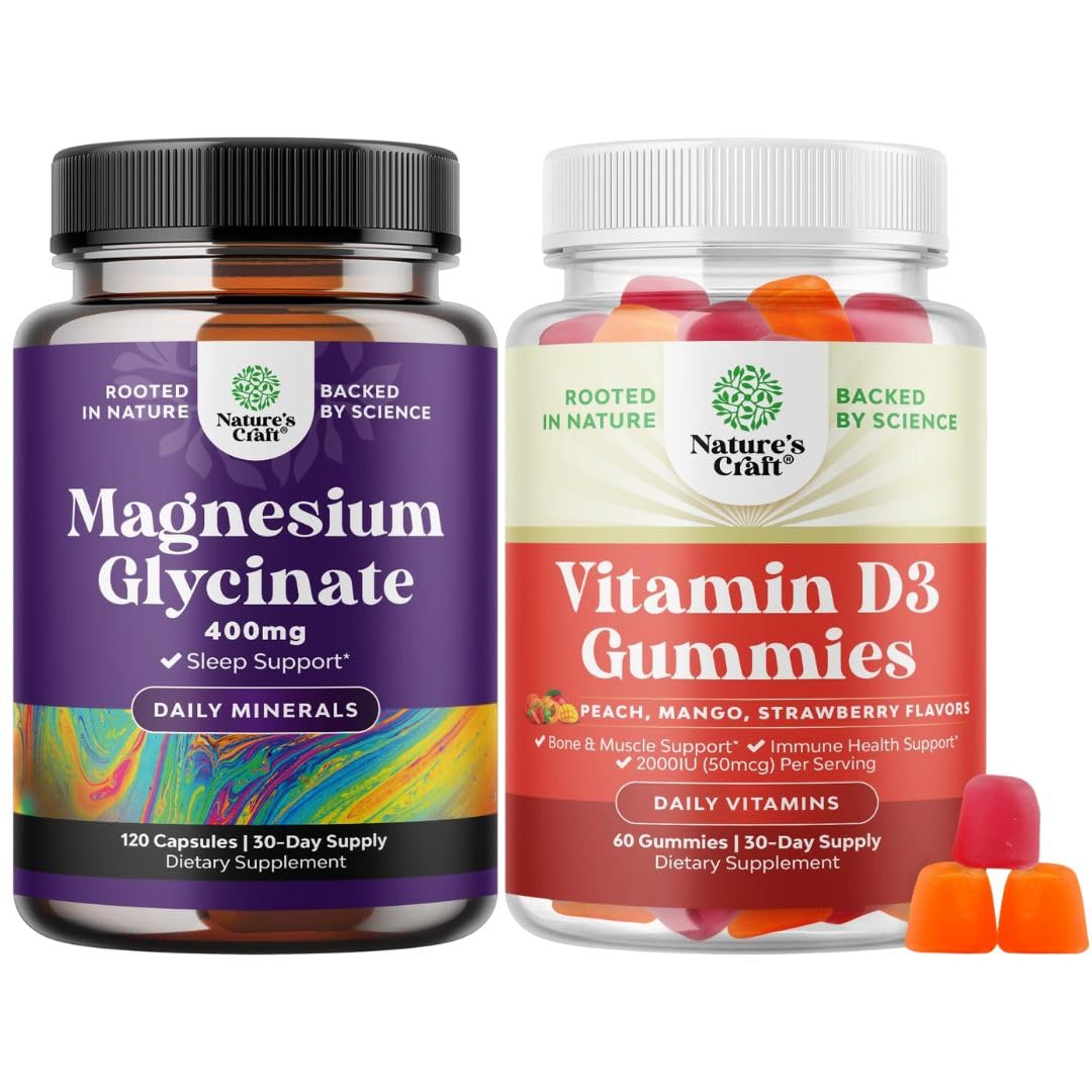 Natures Craft quality - We're proud to be a leading name in health supplements and we are committed to providing consumers like you with pure and responsibly-produced products you can trust. Immune Support Gummies - Vitamin D is one of the most essential immunity vitamins for protecting your body but many adults don't get enough but our vitamin D gummies for women men got you covered. Potent Vitamin D Gummy - Vitamin D supplements are essential for maintaining proper health and our delicious gummies with D3 Vitamin 2000 IU makes it easier than ever to stay on top of your wellness. Magnesium Mineral Supplements - Enhance your wellness with magnesium 400 mg for one of the most versatile minerals which may help improve the body's natural process and support immunity. Extra Strength Magnesium for Sleep - Try our chelated magnesium for sleep so you can rest better and wake up more refreshed thanks to the relaxing properties of this essential mineral.