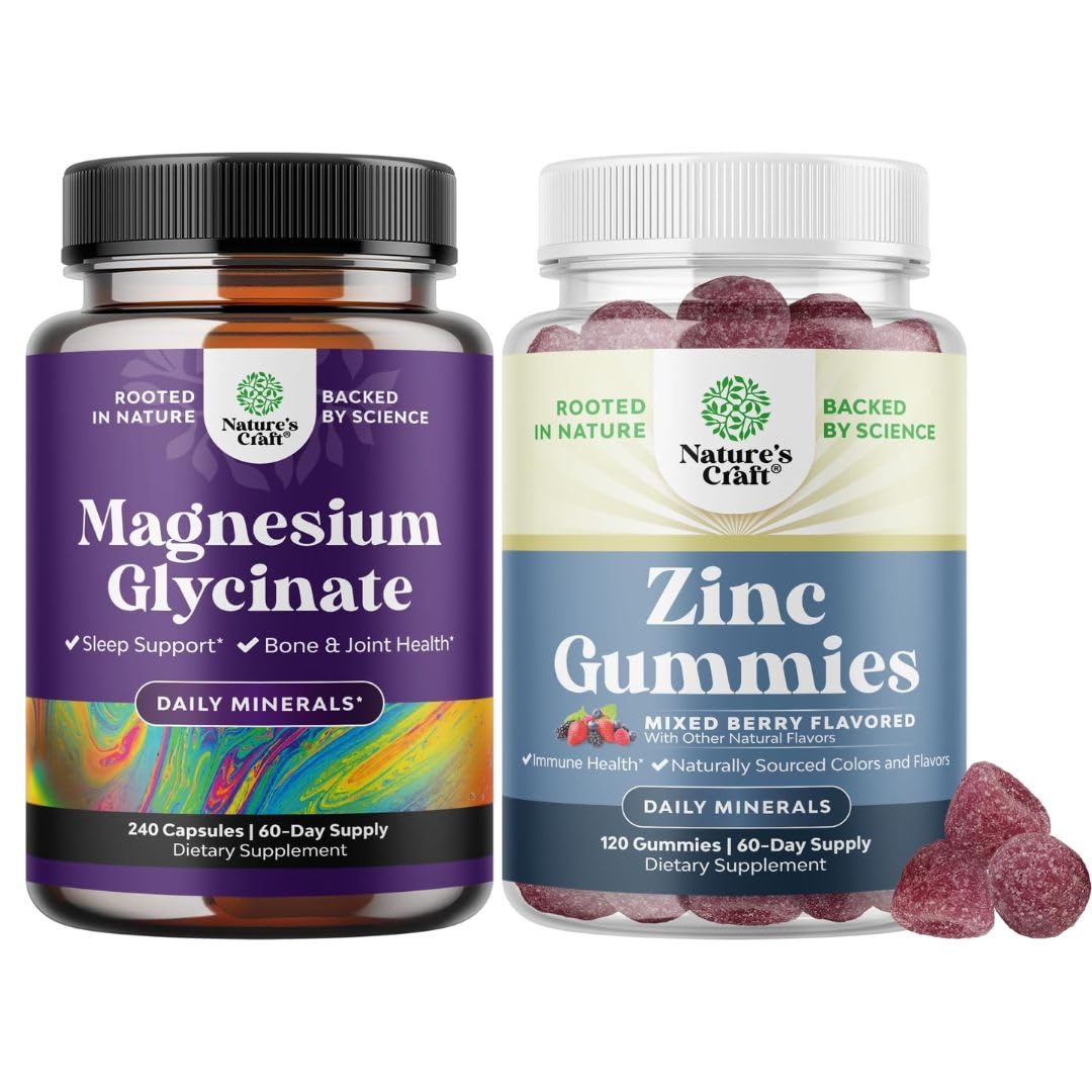Natures Craft quality - We're proud to be a leading name in health supplements and we are committed to providing consumers like you with pure and responsibly-produced products you can trust. IMMUNE DEFENSE ENERGY SUPPORT – Zinc is essential for immune function, helping to promote faster recovery, reduce fatigue, and enhance energy levels. These powerful immune boosters for adults gummies also support skin clarity, wounds recover, and healthy hair growth, keeping you feeling good. EXTRA STRENGTH ZINC GUMMIES – Fortify your immune system and boost energy levels with our zinc supplements for men women, delivering zinc 50mg as citrate per serving. These easy-to-chew zink supplement gummies are a convenient and delicious way to support your overall health and vitality. Magnesium Mineral Supplements - Enhance your wellness with magnesium 400 mg for one of the most versatile minerals which may help improve the body's natural process and support immunity. Extra Strength Magnesium for Sleep - Try our chelated magnesium for sleep so you can rest better and wake up more refreshed thanks to the relaxing properties of this essential mineral.