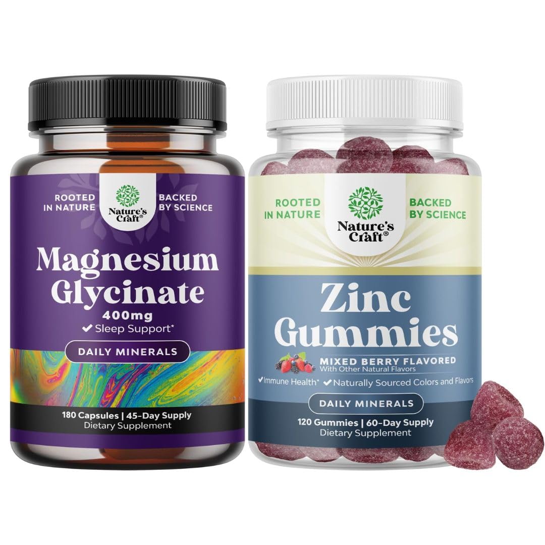 Natures Craft quality - We're proud to be a leading name in health supplements and we are committed to providing consumers like you with pure and responsibly-produced products you can trust. IMMUNE DEFENSE ENERGY SUPPORT – Zinc is essential for immune function, helping to promote faster recovery, reduce fatigue, and enhance energy levels. These powerful immune boosters for adults gummies also support skin clarity, wounds recover, and healthy hair growth, keeping you feeling good. EXTRA STRENGTH ZINC GUMMIES – Fortify your immune system and boost energy levels with our zinc supplements for men women, delivering zinc 50mg as citrate per serving. These easy-to-chew zink supplement gummies are a convenient and delicious way to support your overall health and vitality. Magnesium Mineral Supplements - Enhance your wellness with magnesium 400 mg for one of the most versatile minerals which may help improve the body's natural process and support immunity. Extra Strength Magnesium for Sleep - Try our chelated magnesium for sleep so you can rest better and wake up more refreshed thanks to the relaxing properties of this essential mineral.