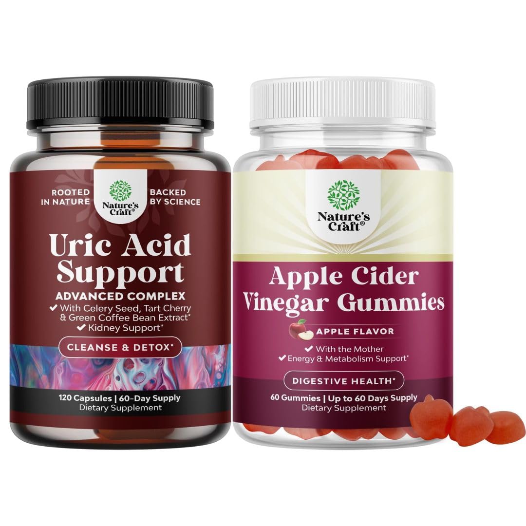 Natures Craft quality - We're proud to be a leading name in health supplements and we are committed to providing consumers like you with pure and responsibly-produced products you can trust. SUPPORTS WEIGHT DETOX - Designed to aid metabolism, cleanse toxins, and support gut health, these ACV weight loss gummies help reduce bloating, boost energy promote natural weight management when combined with a balanced diet and active lifestyle. APPLE CIDER VINEGAR GUMMIES - Enjoy all the benefits of apple cider vinegar mother gums without the harsh taste! Our apple cider vinegar supplement gummies support digestion, immune support, and overall wellness while providing essential nutrients in a delicious, easy-to-take gummy form. PROMOTES HEALTHY URIC ACID LEVELS MOTION – Our uric acid support formula with green coffee extract helps maintain healthy uric acid levels, eg discomfort in joints, hands, feet, and muscles. This uric acid supplement also supports kidney function for optimal detox. ADVANCED URIC ACID CLEANSE JOINT SUPPORT – Designed to help flush excess uric acid, support joint comfort, and promote kidney health, this powerful daily detox kidney support supplement with green coffee beans is ideal for men and women looking for natural help and balance.
