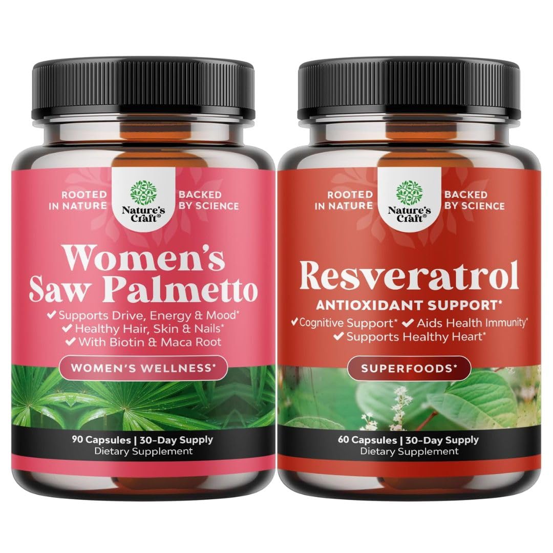 Bundle of Women's Saw Palmetto and Resveratrol Supplement - Saw Palmetto Extract Capsules with Maca Root & Biotin for Hair Loss and AMPK Metabolic Activator for Metabolism Boost & Cellular Efficiency