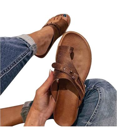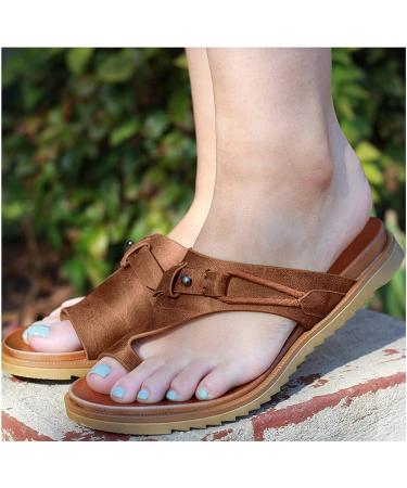 Bunion Correcting Sandals for Women Leather Women Orthotics Sandals Posture Correction Open Toe Slippers Brown US 9