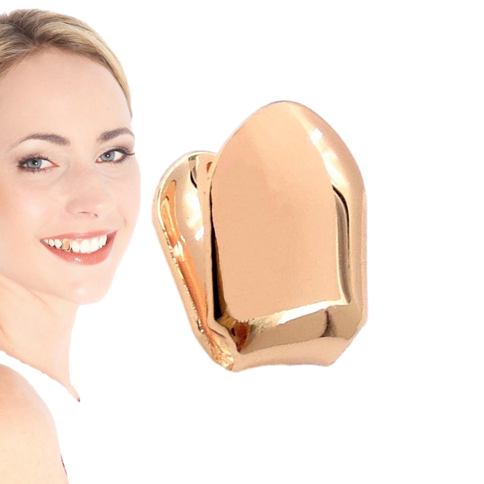 BUNIQ Goldkappen für Zähne,Einzelne Goldzahnkappe 14k Gold realistische Fake-Zähne-Grills - Vergoldete realistische Fake-Zahngitter, Gold-Finish, auffällige und stilvolle Zahnkappen für Damen Roségold
