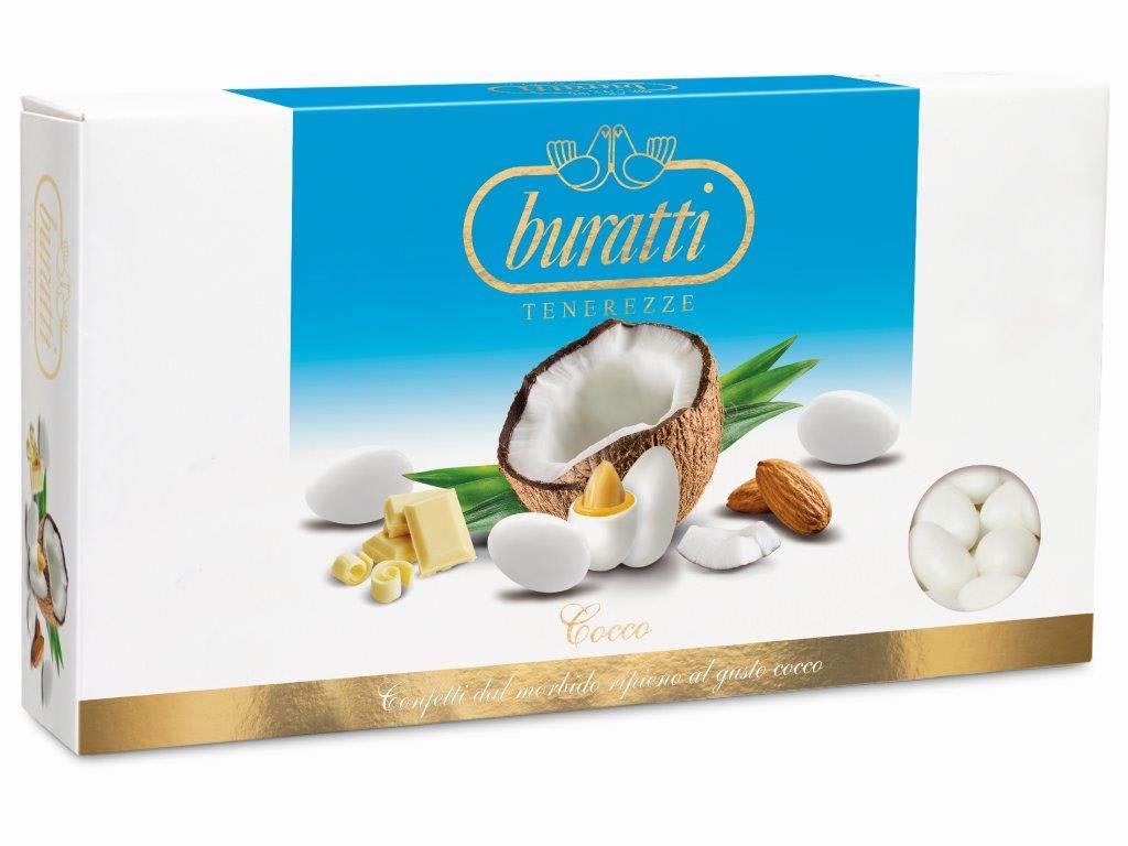 Classic almond, chocolate, and fruit dragees. We have been making dragees for over 60 years it's what we do best. We are guided by tradition, quality, and passion. You can taste it in all our specialties, characterized by artisanal care and attention to detail, which have made the Buratti dragees brand appreciated in Italy and around the world. Our experience in the art of confectionery, combined with a great passion, is the "special recipe" at the heart of all our dragees and sweet products. In our dragees, the traditional soul of the most classic sugared almond finds new life in numerous creations, all made with carefully selected raw materials and never altered by preservatives. In dragees, the absolute protagonist is always and only: taste. INGREDIENTS Teneresse Coconut Flavor SAFETY WARNING This ready-to-eat jam product is not suitable for people allergic or intolerant to the allergens contained or potentially present in food. It may have a negative impact on activity and attention in children. See more