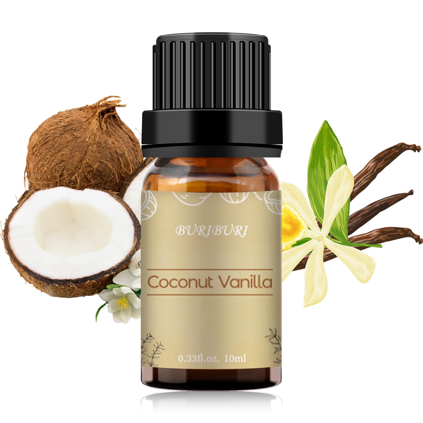 BURIBURI Coconut Vanilla Essential Oil 10ml Premium Grade Scented Oil Coconut Vanilla Fragrance Oil for Diffusers, Massage, Candle Making Soap Making