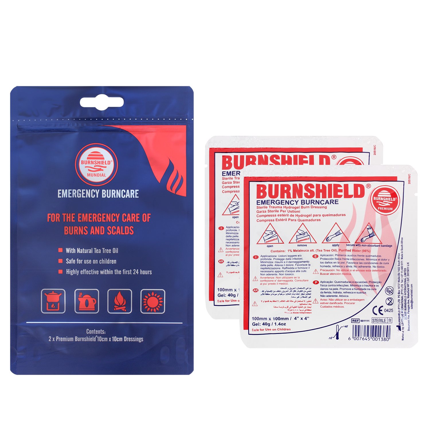 Burnshield.10 x 10 cm wound compress.2 x Premium Burnshield 10 x 10 cm bandage.
