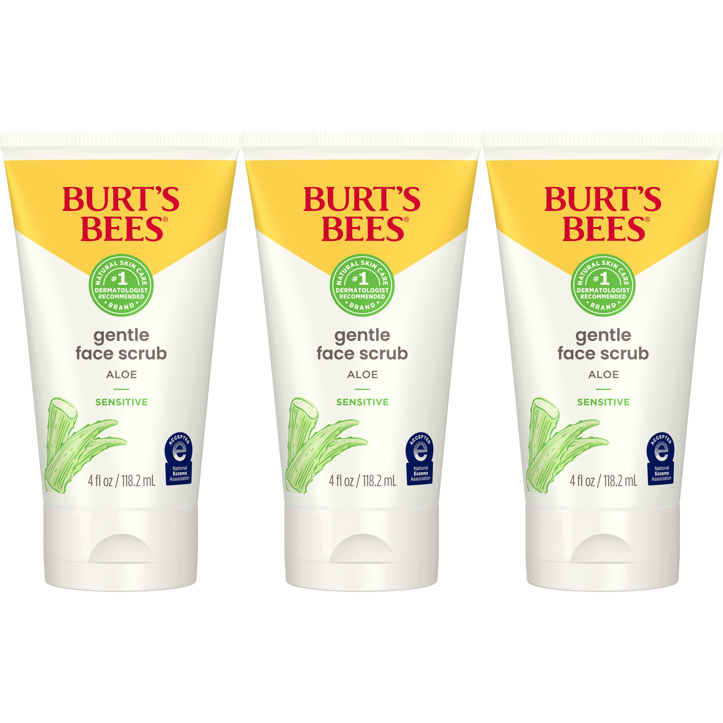 Burt's Bees Gentle Face Scrub with Aloe for Sensitive Skin 98.9% Natural Origin 4 Fluid Ounces Pack of 3