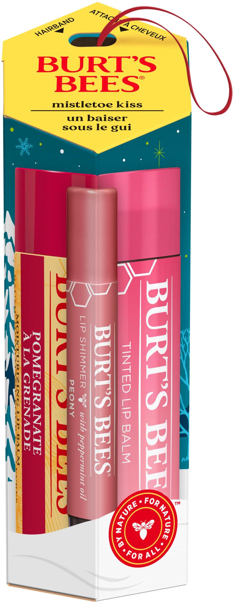 Burt's Bees Mistletoe Kiss Pink Pomegrante Peony Hibiscus Lip Balm and Shimmer Holiday Collection Gift Set of 3-1 Count