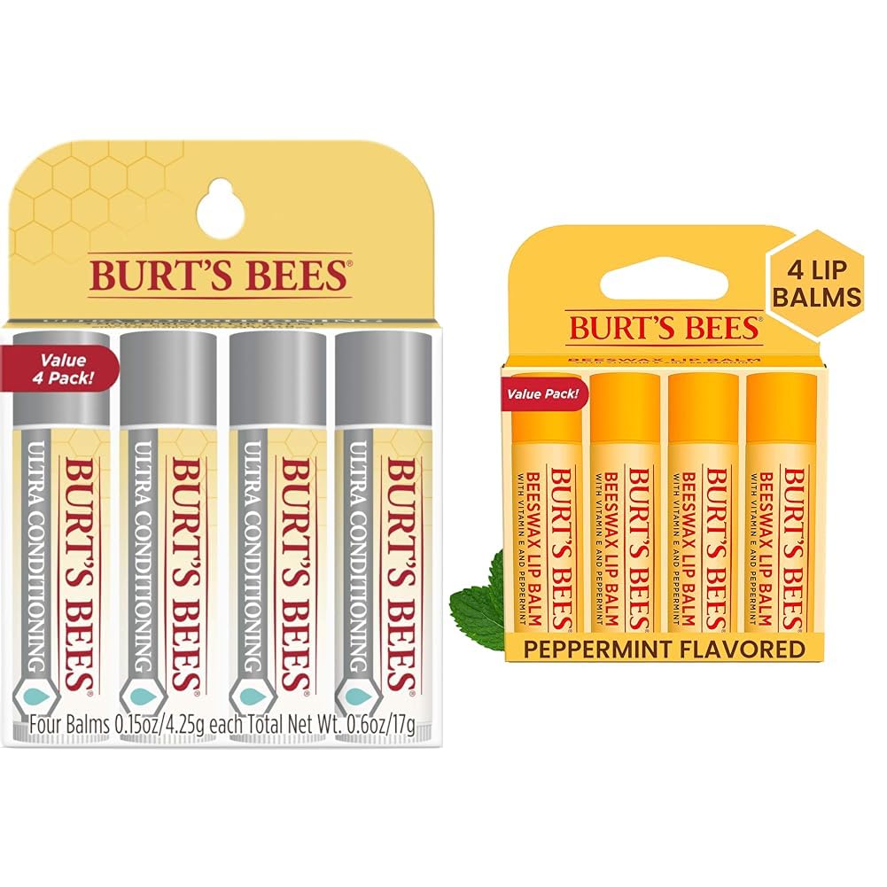 Burt's Bees Ultra Conditioning Moisturizing Lip Balm, Lip Moisturizer Rich in Oils and Butters, Natural Origin Lip Care, 4 Tubes, 0.15 oz.