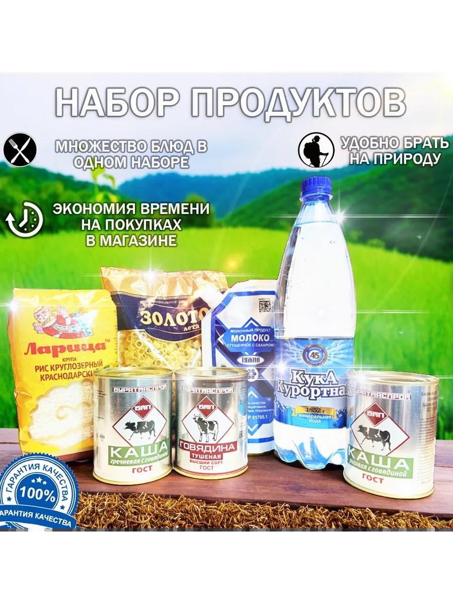 В состав набора входят высококачественные тушеная говядина и разнообразные консервированные каши. Вы сможете насладиться как рисовой, так и гречневой кашей, каждая из которых обладает отличными питательными свойствами и легкостью в приготовлении. Эти блюда помогут вам поддерживать высокий уровень энергии и здоровья в любых условиях.