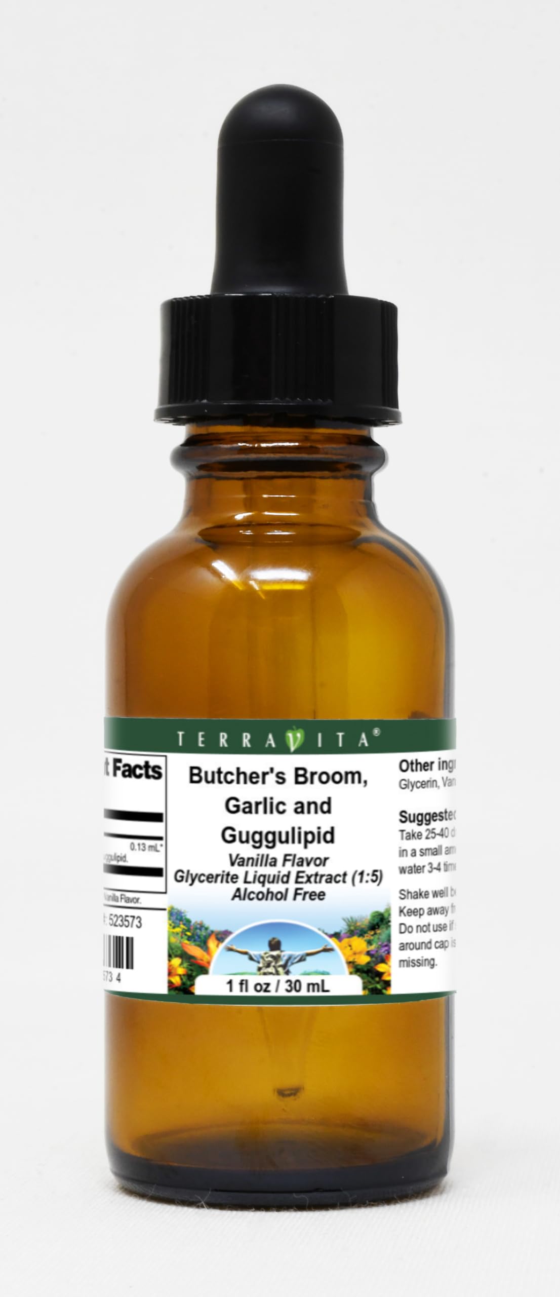 Convenient Liquid format. Size: 1 oz. Manufacturer: TerraVita. No fillers. Butcher's Broom, Garlic and Guggulipid Glycerite Liquid Extract (1:5) - Vanilla Flavored (1 oz, ZIN: 523573).