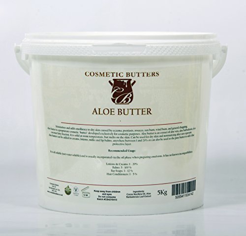 Butter mixed with aloe vera - 5 kg INCI: coconut oil, glycine soybean oil, aloe barbadensis leaf extract Description: Butter mixed with aloe vera is a mixture of coconut oil, soybean oil and aloe vera extract. This butter is rich in vitamins A, C, E, B, choline, B12, folic acid, highly antioxidant and known for its anti-inflammatory and healing properties. Aloe vera extract is renowned for its ability to quickly soothe, rejuvenate, restore and rehydrate the skin. The aloe soothes the skin while drawing out any added essential oils to aid their effects. Uses: Typically used in butters, lotions and gels or simply apply directly to the skin, useful for sunburn. Skin type: suitable for all skin and hair types. Particularly dry and damaged skin. Country of origin: United Kingdom Product type: Mixed butter. Recommended Use: It is oil soluble (not water soluble) and is usually incorporated through the oil phase when preparing emulsions. There are no known incompatibilities. Storage: It should be stored in a cool, dark place and has a shelf life of up to 24 months after opening when properly stored. Important note: For external use only. Keep out of reach of children and eyes. The information provided is for educational purposes only. The appearance of this butter may vary slightly from batch to batch due to the natural ingredients found in this product.Skin Type: Suitable for all skin and hair types. Especially dry and damaged skin. Uses: Typically used in butters, lotions, and gels or simply applied directly to the skin, helpful for sunburn. Aloe Vera Blended Butter is a blend of coconut oil, soybean oil, and aloe vera extract. This butter is rich in vitamins A, C, E, B, choline, B12, folic acid, highly antioxidant, and known for its anti-inflammatory and healing properties. Aloe vera extract is known for its ability to quickly soothe, rejuvenate, restore, and rehydrate the skin. Aloe soothes the skin while drawing out all the added essential oils to aid their effects. INCI: Cocos Nucifera Oil Aloe Barbadensis Leaf Extract. Aloe Vera Blended Butter - 5 kg. Beurre mélangé à l'aloe vera - 5 kg INCI : huile de noix de coco, huile de soja de glycine, extrait de feuille d'aloe barbadensis Description : Le beurre mélangé à l'aloe vera est un mélange d'huile de noix de coco, d'huile de soja et d'extrait d'aloe vera. Ce beurre est riche en vitamines A, C, E, B, choline, B12, acide folique, hautement antioxydant et réputé pour ses propriétés anti-inflammatoires et cicatrisantes. L'extrait d'aloe vera est réputé pour sa capacité à apaiser, rajeunir, restaurer et réhydrater rapidement la peau. L'aloe apaise la peau tout en dessinant toutes les huiles essentielles ajoutées pour aider leurs effets. Utilisations : généralement utilisé dans les beurres, lotions et gels ou simplement appliquer directement sur la peau, utile pour les coups de soleil. Type de peau : convient à tous les types de peau et de cheveux. Peau particulièrement sèche et abîmée. Pays d'origine : Royaume-Uni Type de produit : Beurre mélangé. Utilisation recommandée : Il est soluble dans l'huile (non soluble dans l'eau) et est généralement incorporé par la phase d'huile lors de la préparation des émulsions. Il n'y a pas d'incompatibilités connues. Stockage : il doit être stocké dans un endroit frais et sombre et a une durée de conservation jusqu'à 24 mois après ouverture lorsqu'il est correctement stocké. Remarque importante : pour un usage externe uniquement. Tenir hors de portée des enfants et des yeux. Les informations fournies sont uniquement à des fins éducatives. L'apparence de ce beurre peut légèrement varier d'un lot à l'autre en raison des ingrédients naturels présents dans ce produit.Type de peau : convient à tous les types de peau et de cheveux. Peau particulièrement sèche et abîmée. Utilisations : généralement utilisé dans les beurres, lotions et gels ou simplement appliquer directement sur la peau, utile pour les coups de soleil. Le beurre mélangé à l'aloe vera est un mélange d'huile de noix de coco, d'huile de soja et d'extrait d'aloe vera. Ce beurre est riche en vitamines A, C, E, B, choline, B12, acide folique, hautement antioxydant et réputé pour ses propriétés anti-inflammatoires et cicatrisantes. L'extrait d'aloe vera est réputé pour sa capacité à apaiser, rajeunir, restaurer et réhydrater rapidement la peau. L'aloe apaise la peau tout en dessinant toutes les huiles essentielles ajoutées pour aider leurs effets. INCI : Huile de Cocos nucifera Extrait de feuille d'Aloe Barbadensis. Beurre mélangé à l'aloe vera - 5 kg.