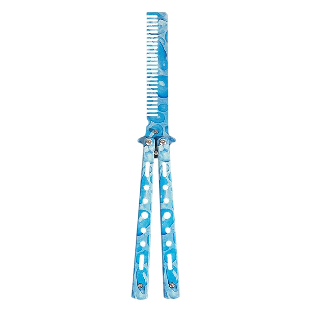 Butterfly Knife Comb Stainless Steel Comb Trainer Unsharpened Slice Butterfly Training Comb for Beginner Aqua Blue