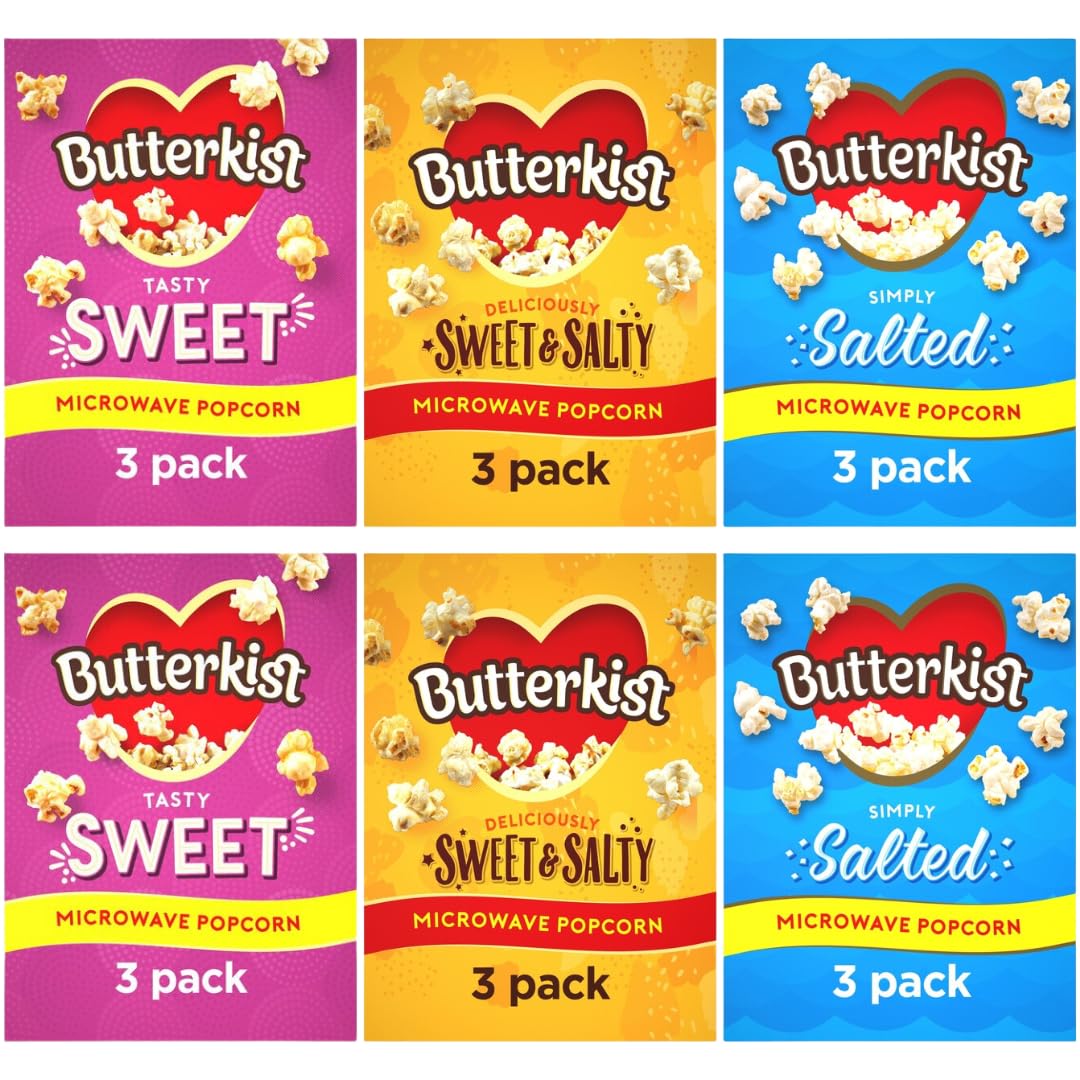 Trusted : is a trusted and well-established with a strong reputation in the popcorn industry. With a history of delivering tasty and high-quality popcorn, Butterkist has gained the trust and loyalty of popcorn enthusiasts worldwide. Suitable for Sharing:popcorn is a fantastic snack for sharing with friends, family, or at social gatherings. The different pack sizes and resealable packaging options make it easy to enjoy and share the popcorn on various occasions. Deliciously Crunchy: popcorn is known for its satisfying crunch. The kernels are popped to create light and crispy popcorn that provides an enjoyable snacking experience. Superior Quality: is committed to using high-quality ingredients in their popcorn. The popcorn kernels are carefully selected and popped to perfection, ensuring a consistently great taste and texture. Variety of Flavors: offers a wide range of popcorn flavors to suit different preferences. From classic buttery popcorn to sweet toffee, salted caramel, or even unique limited-edition flavors, there's a Butterkist popcorn flavor for everyone to enjoy.