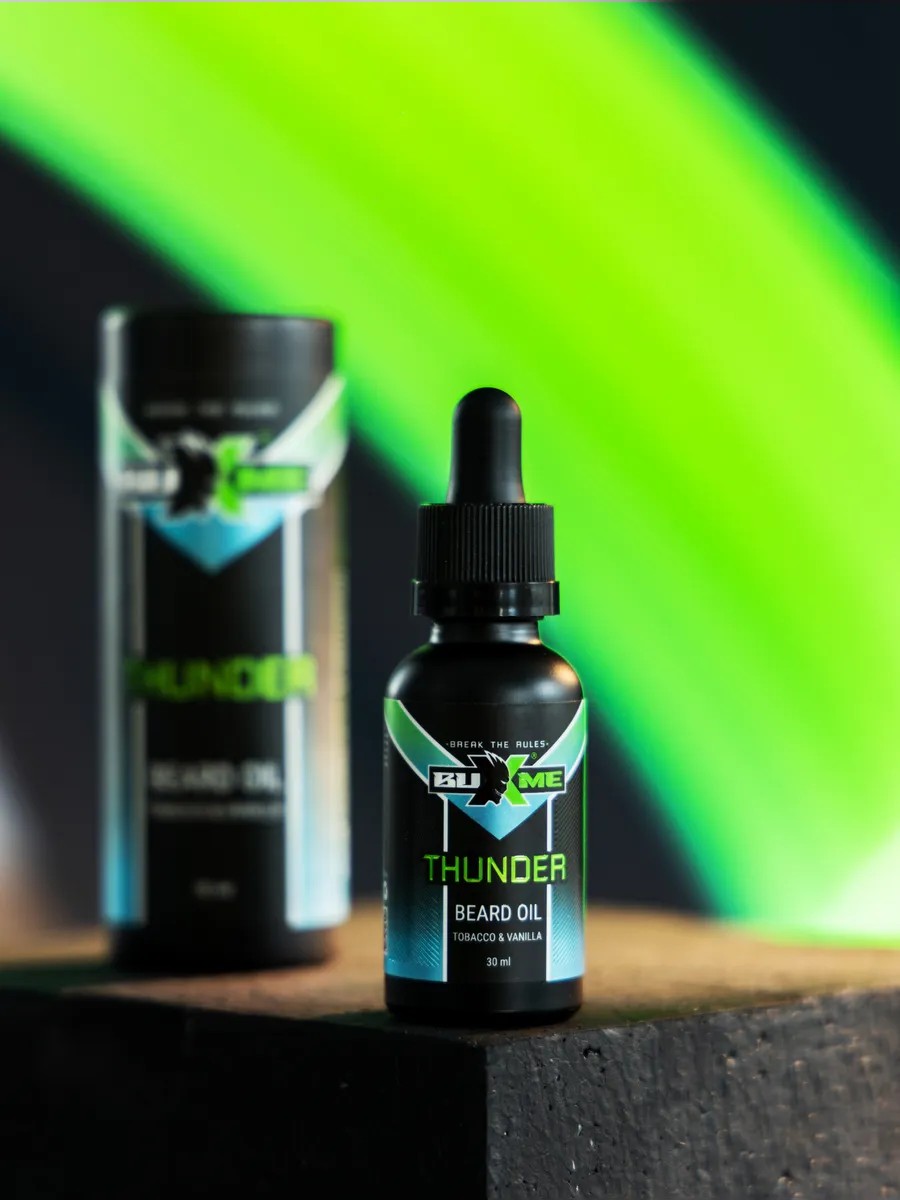 Масло для бороды и усов Buxme THUNDER с ароматом табак-ваниль. Объем 30мл.