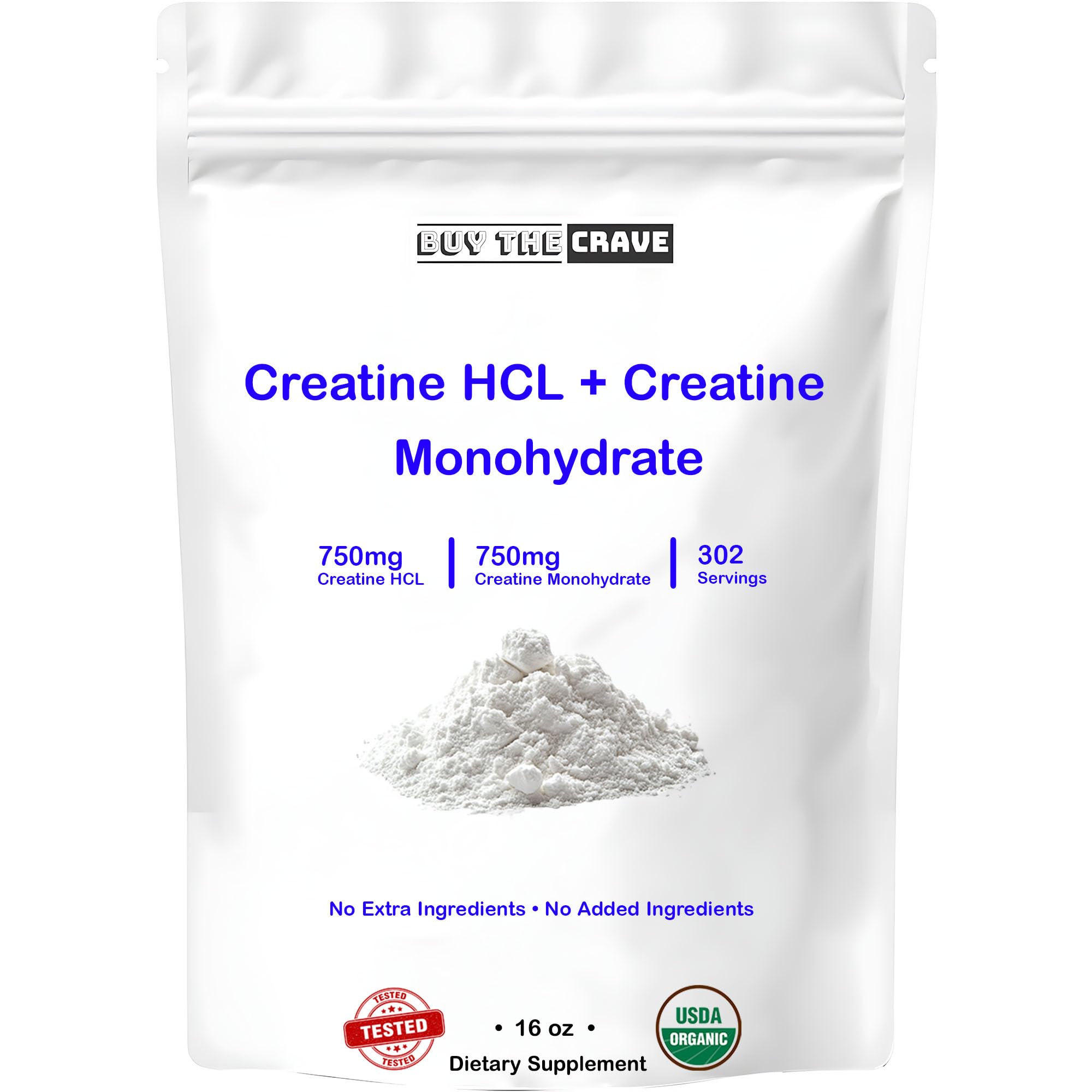 BUY THE CRAVE Creatine HCL + Creatine Monohydrate Mix Less Sour & Easier to Consume Post Workout Muscle Builder for Men & Women Creatine Hydrochloride + Monohydrate 16 OZ (454g)