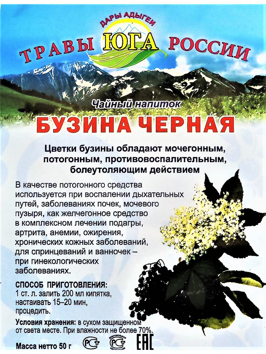 | Состав травяного сбора | бузина черная; бузина черная цветки; бузина черная сушеная цветки |