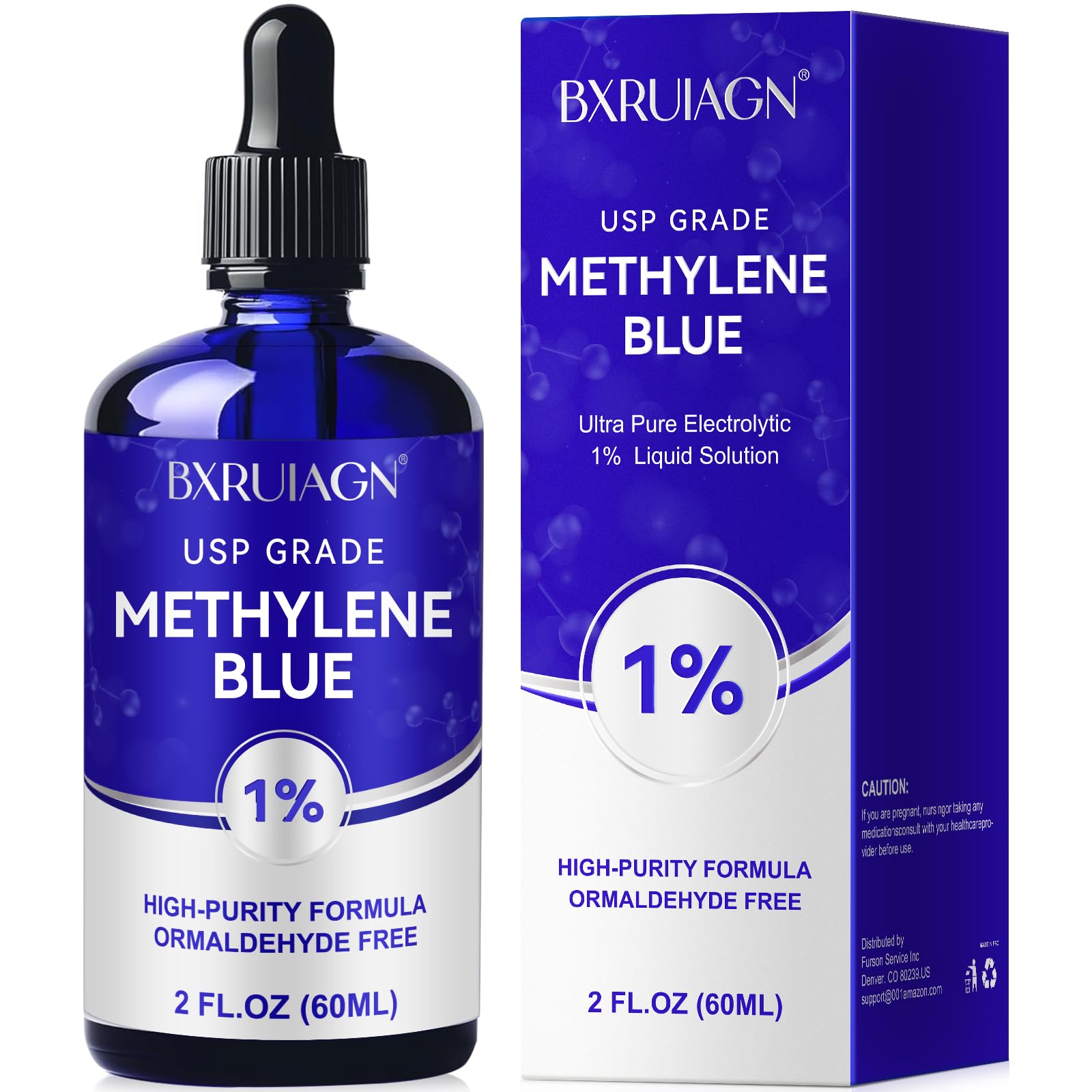 BXRUIAGN Methylene Blue Pharmaceutical Grade - USP Grade 1% Solution Third-Party Tested Brain Health Dietary Supplement for Humans with Balanced Electrolyte Solution Non-GMO No Formaldehyde