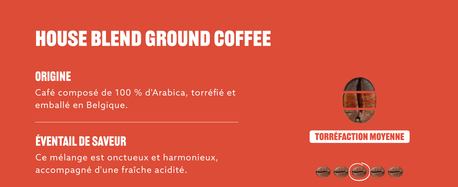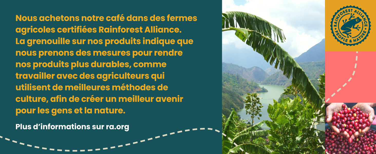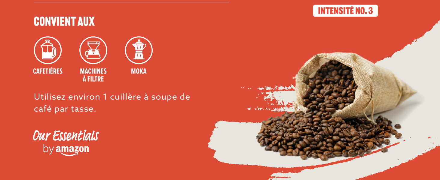 by Aroma All-Purpose Ground Coffee - UTZ Certified, 1.36 kg (6 x 227g). RAINFOREST ALLIANCE CERTIFIED: The coffee we source for this product is Rainforest Alliance Certified, which means it doesn't just taste good, it does good too. With every purchase, you're helping hundreds of farmers and their families around the world, and you're also doing your bit for the rainforest - drink better, do better INGREDIENTS Coffee (100 ) DIRECTIONS Grind the coffee to a consistency similar to granulated table salt, measure 1 to 2 tablespoons per six ounces of water, heat water to 200 F (93 C), pour water over the ground coffee, and steep for 3 to 4 minutes. Strain if necessary and serve. SAFETY WARNING Contains caffeine. Not recommended for children or pregnant women. Suitable for vegetarian and vegan diets. RAINFOREST ALLIANCE CERTIFIED: The coffee we source for this product is Rainforest Alliance Certified, which means it doesn't just taste good, it does good too. With every purchase, you're helping hundreds of farmers and their families around the world, and you're also doing your bit for the rainforest - drink better, do better. SMOOTH AND DELICATE: Smooth and round with a fresh acidity. Packaged in a protective atmosphere. Roasted and packaged in Belgium. Suitable for French press, filter, or moka pot. Strength 3 5. Blend of Arabica and Robusta ground coffee beans. Roast: Medium speed, medium color. by Café moulu Aroma compatible avec tout usage - certifié UTZ, 1,36 kg (6 x 227g). CERTIFIÉ RAINFOREST ALLIANCE: Le café que nous achetons pour ce produit est certifié Rainforest Alliance , ce qui signifie qu'il n'a pas seulement bon goût, il fait aussi du bien. Avec chaque achat, vous aidez des centaines d'agriculteurs et leurs familles à travers le monde, et vous faites également un geste pour la forêt tropicale - buvez mieux, faites mieux INGRÉDIENTS Café (100 ) MODE D'EMPLOI Grind the coffee to a consistency similar to granulated table salt, measure 1 to 2 tablespoons per six ounces of water, heat water to 200 F (93 C), pour water over the ground coffee, and steep for 3 to 4 minutes. Strain if necessary and serve. AVERTISSEMENT DE SÛRETÉ Contient de la caféine. Non recommandé pour les enfants et les femmes enceintes. Convient aux régimes végétarien et végétalien. CERTIFIÉ RAINFOREST ALLIANCE: Le café que nous achetons pour ce produit est certifié Rainforest Alliance , ce qui signifie qu'il n'a pas seulement bon goût, il fait aussi du bien. Avec chaque achat, vous aidez des centaines d'agriculteurs et leurs familles à travers le monde, et vous faites également un geste pour la forêt tropicale - buvez mieux, faites mieux. DOUX ET DÉLICAT: Lisse et rond avec une acidité fraîche. Conditionné sous atmosphère protectrice. Torréfié et conditionné en Belgique. Adapté aux cafetières à piston, filtre ou italienne. Intensité 3 5. Mélange de grains de café moulus Arabica et Robusta. Torréfaction: Vitesse moyenne, couleur moyenne.