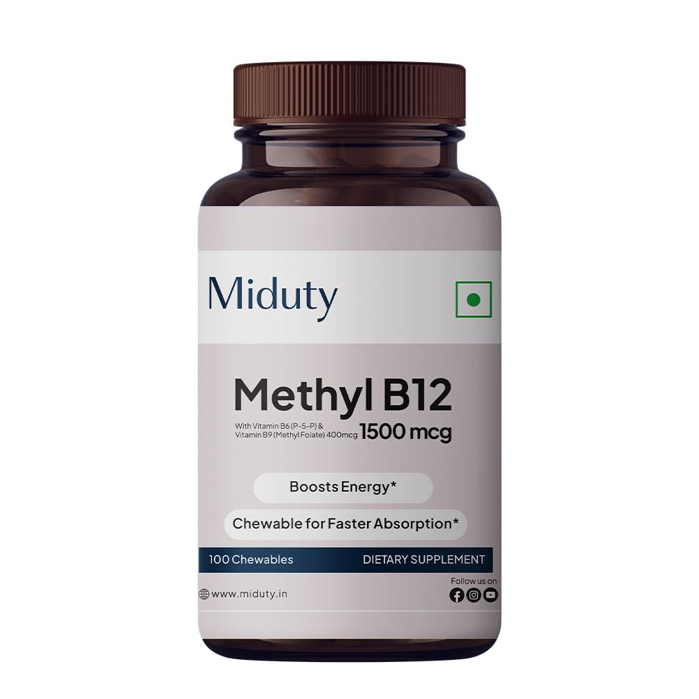 Dosage- Take 1 chewable after lunch or as directed by the health care professional. Formulated with methylcobalamin, a natural form of vitamin B12. Chewable tablet formulation helps with easy consumption and direct absorption. Miduty's Methyl Folate Contains folate and vitamin B6, which are the variants that have the most bioavailability.