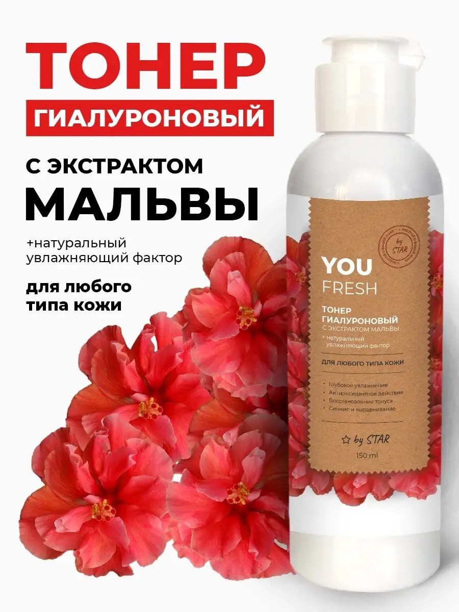 Тонер на каждый день "YOU FRESH" – глубокое увлажнение с экстрактом мальвы вашей кожи! Увлажняющая концентрированная формула, для любого типа кожи, на основе гиалуроновой кислоты трех фракций с экстрактом мальвы и натуральным увлажняющим фактором.