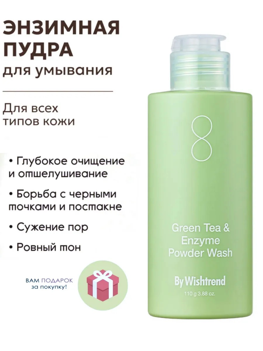 Энзимная пудра с зелёным чаем By Wishtrend Green Tea & Enzyme Powder Wash мягко отшелушивает ороговевший слой кожи, удаляет омертвевшие клетки и тонизирует.