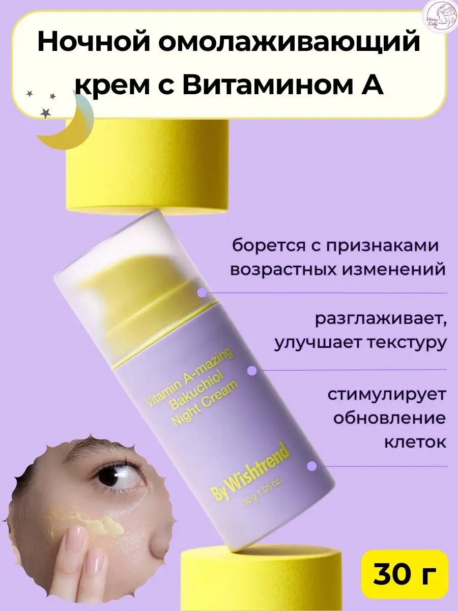 BY WISHTREND Vitamin A-mazing Bakuchiol Night Cream - Ночной омолаживающий крем уменьшает глубину морщин и предотвращает их появление, выравнивает микрорельеф, повышает эластичность, помогает в борьбе с акне, увлажняет.