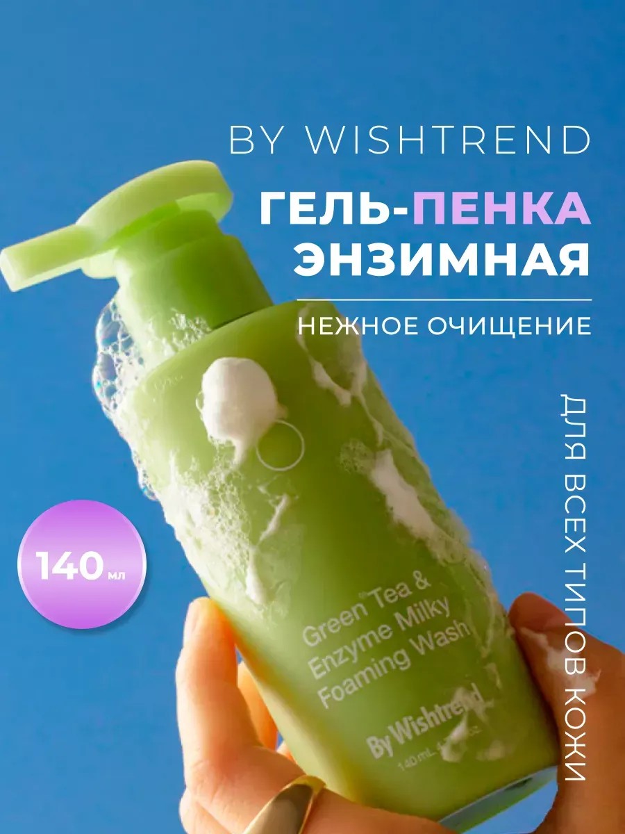 Молочный очищающий гель для умывания с зеленым чаем BY WISHTREND Green Tea & Enzyme Milky Foaming Wash - это высокоэффективное средство для ежедневного очищения кожи лица.