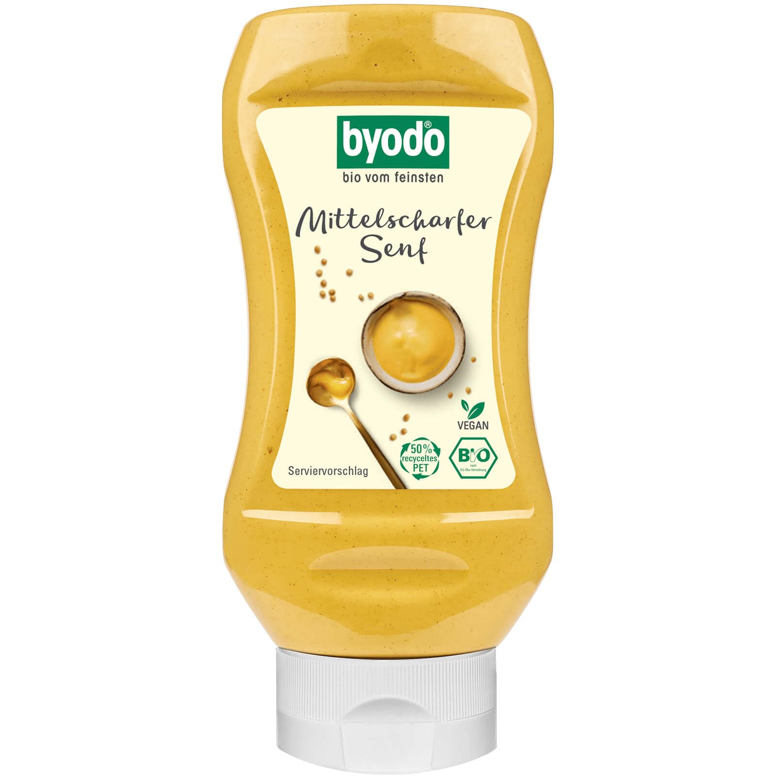 Finish: Byodo mustard impresses with its creaminess, fine tang, and spicy flavor. It's a versatile kitchen staple – it uses only the finest 100 organic ingredients. The secret blend of spices and German mustard seeds, partly sourced from the Byodo cultivation project with the Waginger See - Rupertiangle ecological region, makes it incomparably delicious. Byodo organic mustard not only tastes great with sausages and cheese, but also enhances salad dressings, soups, and fish and meat dishes. Its convenient tube makes portioning easy. Organic certification label enEU - The Vegan Society INGREDIENTS Water, YELLOW seeds, water vinegar, rock salt, brown seeds, spices INSTRUCTIONS FOR USE Byodo's medium-grind organic mustard not only tastes great with sausages and cheese, but also enhances salad dressings, soups, and fish and meat dishes. It can be easily portioned in the convenient PET bottle. See moreByodo Bouteille bio Moutarde moyennement pointue en PET 300 ml (6 x 300 ml)DESCRIPTION DU PRODUIT DESCRIPTION DU PRODUIT Finition : la moutarde Byodo séduit par sa crémité, son tranchant fin et son goût épicé. Il est un talent polyvalent dans la cuisine – il ne trouve que les meilleurs ingrédients 100 biologiques. Le mélange secret d'épices et de graines de moutarde allemande, en partie du projet de culture Byodo avec la région écologique du Waginger See - Rupertiangle, le rendent incomparablement délicieux. La moutarde bio de Byodo n'a pas seulement un goût de saucisses et de fromage, mais affine les vinaigrettes, les soupes et les plats de poisson et de viande. Grâce à son tube pratique, il est facile de faire des portions. Certification label bio enEU - The Vegan Society INGRÉDIENTS Eau, graines de JAUNE, vinaigre d'eaux, sel gemme, graines brunes, épices MODE D'EMPLOI La moutarde bio moyenne tranchante de Byodo a non seulement un goût de saucisse et de fromage, mais affine les vinaigrettes, les soupes et les plats de poisson et de viande. Dans la bouteille en PET pratique, il peut être facilement portionné. Voir plus