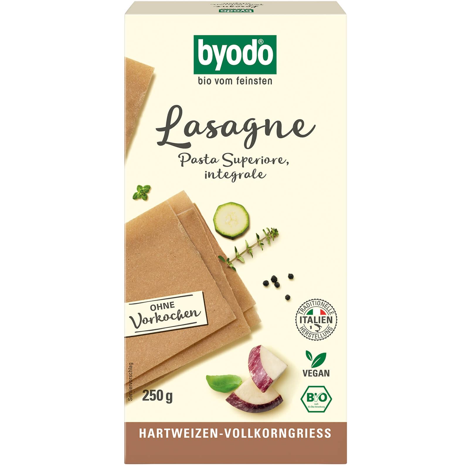 Byodo Lot de 12 plaques de lasagne bio (12 x 250 g) – Semoule de blé dur 100 bio, morsure parfaite d'Al Dente, fabrication italienne traditionnelle, pas de pré-cuisson nécessaire 250 g (12er Pack)