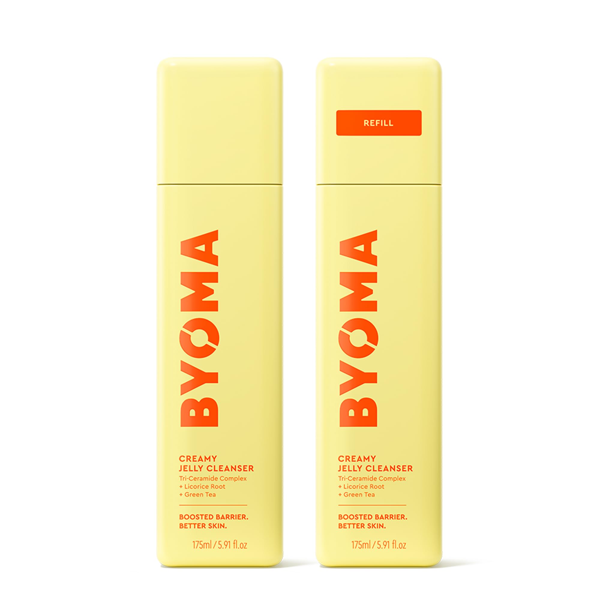 BYOMA Creamy Jelly Cleanser & Refill Bundle Hydrating Face Wash for Sensitive Skin Tri-Ceramide Formula for Skin Barrier Repair Removes Makeup & Oil 2 x 5.91 fl oz