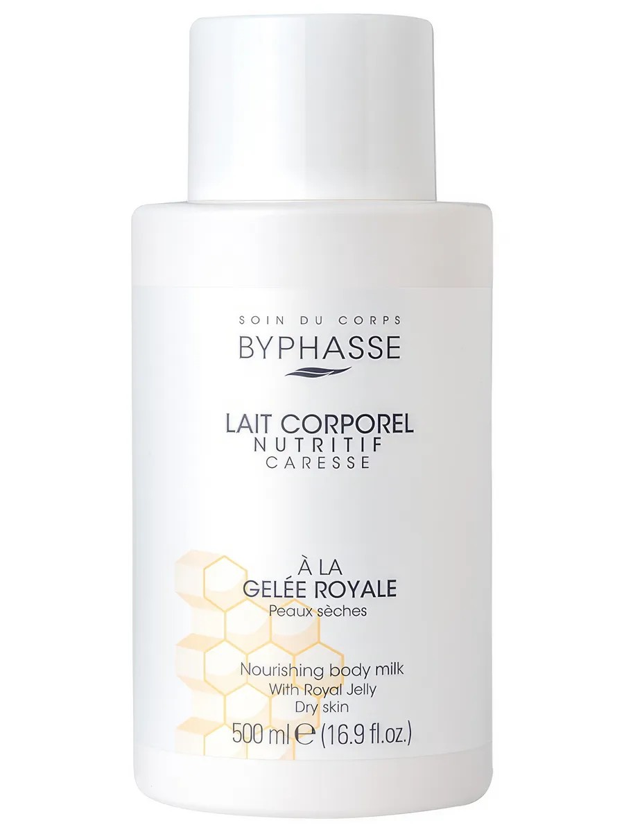 Byphasse Nourishing Body Lotion with Royal Jelly nourishes and softens the skin, leaving it pleasantly scented. It softens the skin, leaving a pleasant, soft, and light scent. Royal Jelly is rich in proteins, vitamins, amino acids, and minerals, providing essential nourishment and hydration for even the driest skin. After use, skin feels hydrated and velvety smooth.