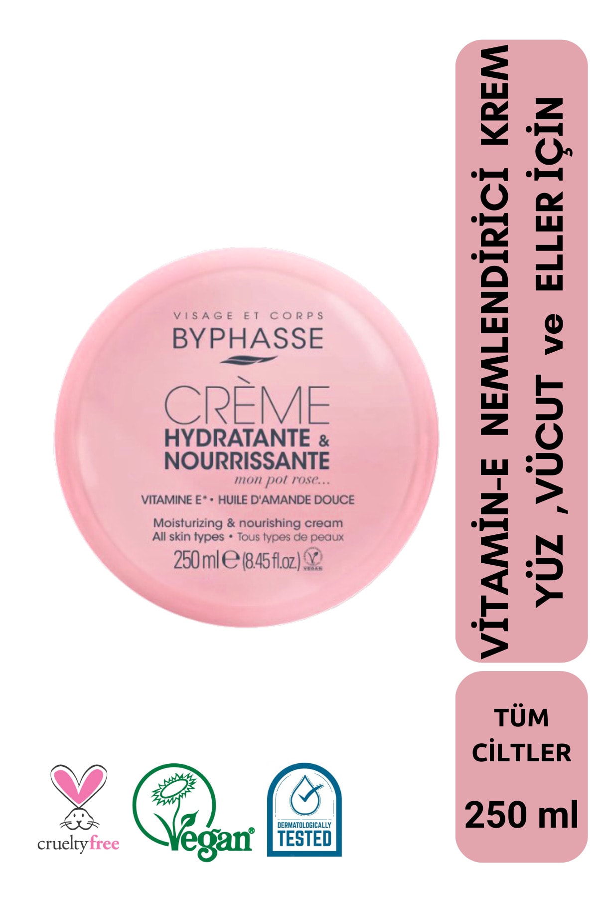BYPHASSE Vitamin-E Moisturizing Cream for Face Body and Hands 250ml