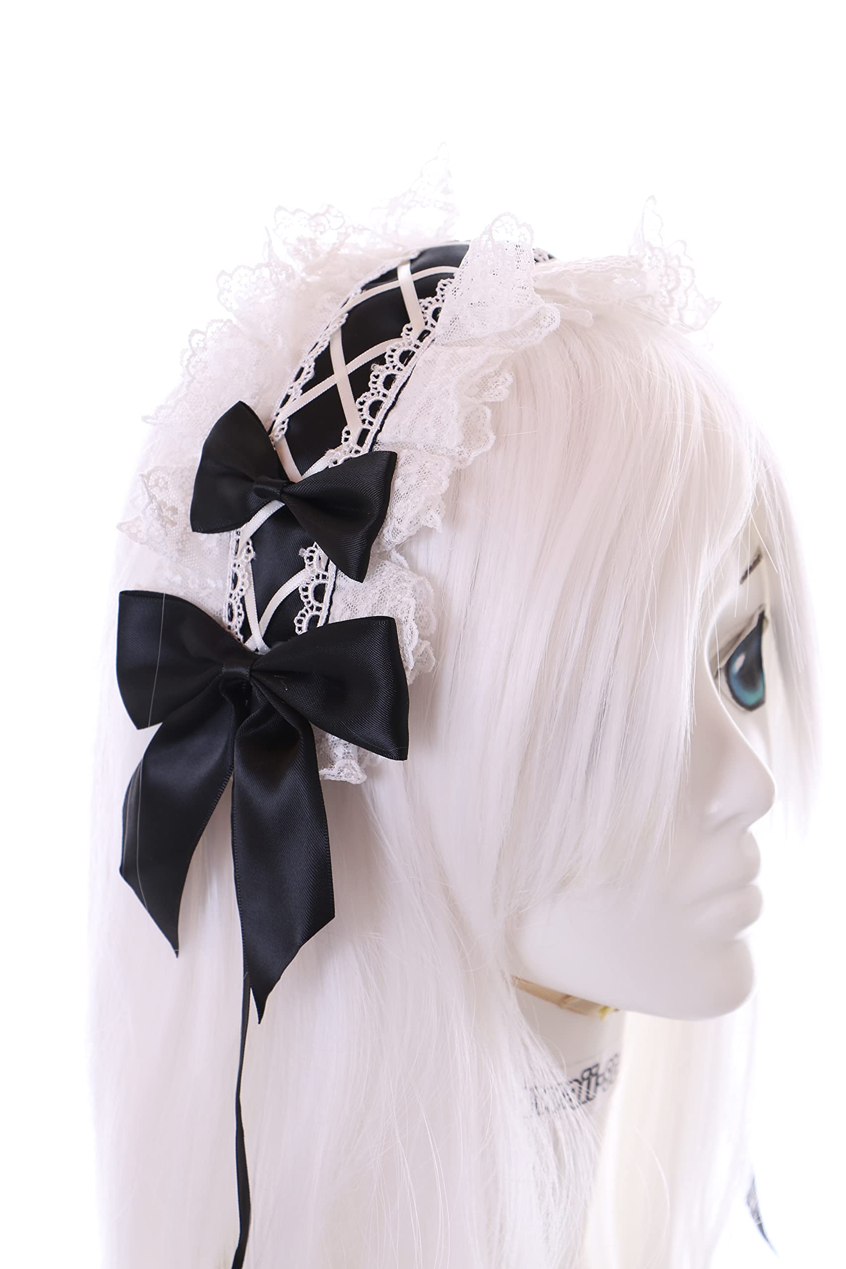 C-05-1 Black Maid Lolita Headband with Bow Gothic Hair Accessory Headband