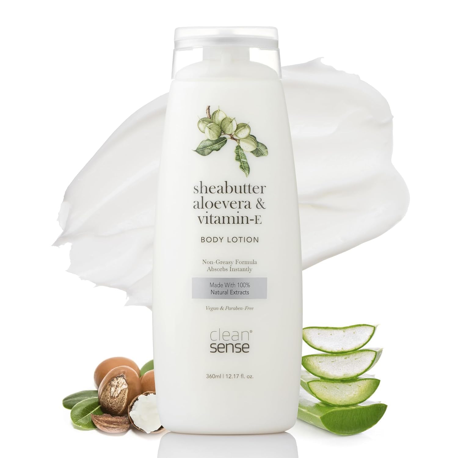 C..leansense Body Lotion with Sheabutter Aloevera and Vitamin E, 360 ml, Non Greasy Daily Use Body Moisturizer For Men and Women, 100% Vegan and Paraben Free (Body Lotion, 360ml)