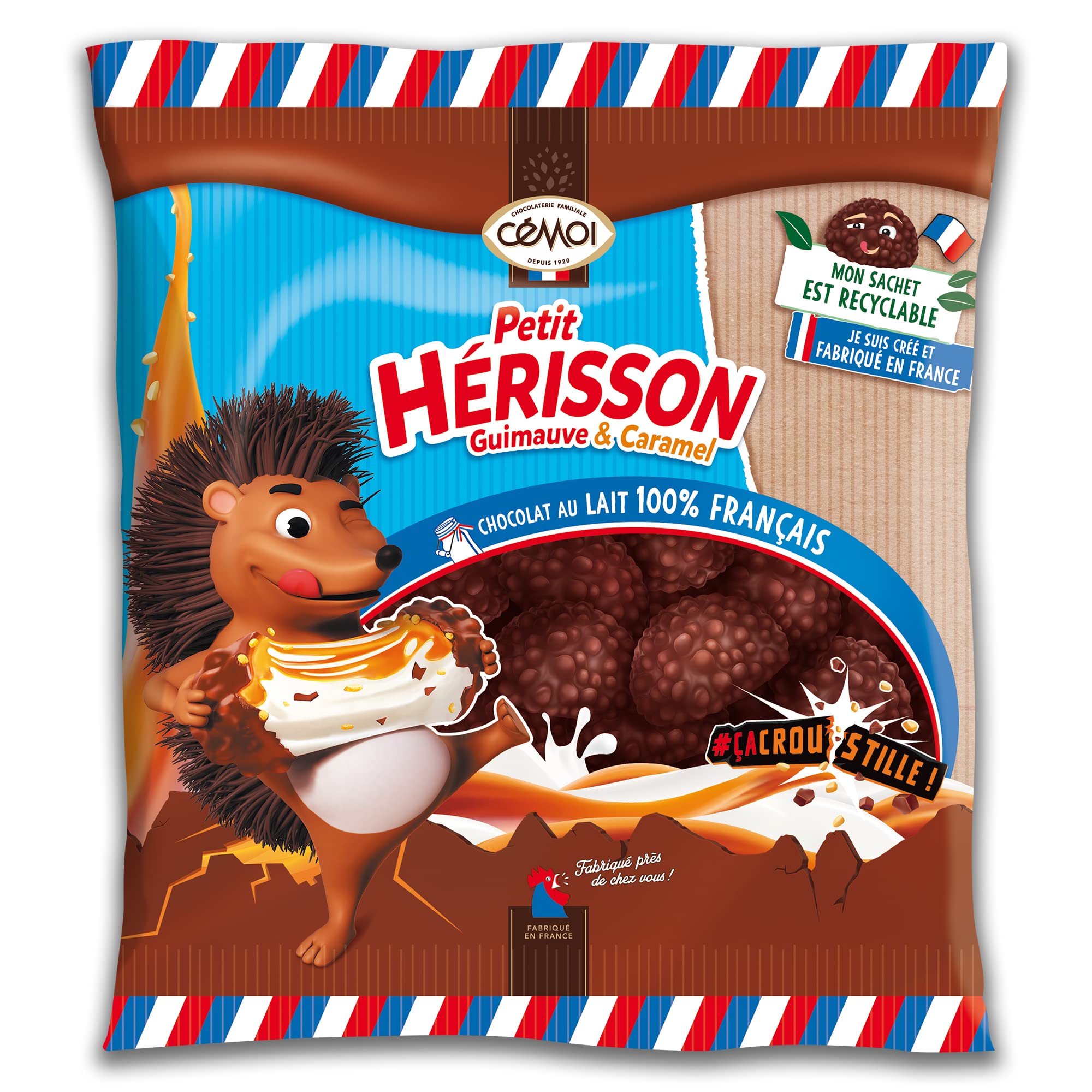 Melt with the authentic Little Hedgehog Milk Chocolate Marshmallow INGREDIENTS INGREDIENTS: milk chocolate 35 (sugar, cocoa butter, French whole MILK powder 4.9 , cocoa mass, WHEY powder, emulsifier: lecithins, natural vanilla flavoring), glucose-fructose syrup, caramel 16 [glucose syrup, vegetable fat (palm), sweetened condensed MILK, sugar, dextrose, emulsifiers: lecithins mono and di glycerides of fatty acids, salt], crispy cereals 6 [rice flour, OAT flour, WHEAT flour, malt syrup (BARLEY), sugar, WHEY powder, salt, dextrose], sugar, water, vegetable fats (palm kernel, palm, shea), gelatin, fat-reduced cocoa powder, WHEY powder, emulsifier: lecithins, natural vanilla flavor, flavoring. DIRECTIONS FOR USE Store in a cool, dry place All in a paper bag, recyclable in the paper sector. The deliciously crunchy chocolate coating of this comforting little treat. Adults will succumb to the creamy center. Fondez avec l'authentique Petit Hérisson Guimauve au chocolat au lait INGRÉDIENTS INGREDIENTS: chocolat au lait 35 (sucre, beurre de cacao, LAIT entier en poudre français 4,9 , pâte de cacao, LACTOSERUM en poudre, émulsifiant : lécithines, arôme naturel de vanille), sirop de glucose-fructose, caramel 16 [sirop de glucose, graisse végétale (palme), LAIT concentré sucré, sucre, dextrose, émulsifiants : lécithines mono et di glycérides d'acide gras, sel], céréales croustillantes 6 [farine de riz, farine d'AVOINE, farine de BLE, sirop de malt (ORGE), sucre, LACTOSERUM en poudre, sel, dextrose], sucre, eau, graisses végétales (palmiste, palme, karité), gélatine, cacao maigre en poudre, LACTOSERUM en poudre, émulsifiant : lécithines, arôme naturel de vanille, arôme. MODE D'EMPLOI Stocker dans un endroit frais et sec Le tout dans un sachet papier, recyclable dans la filière papier. L'enrobage craquant délicieusement chocolaté de cette petite douceur réconfortante. Grands succomberont au coeur onctueux.