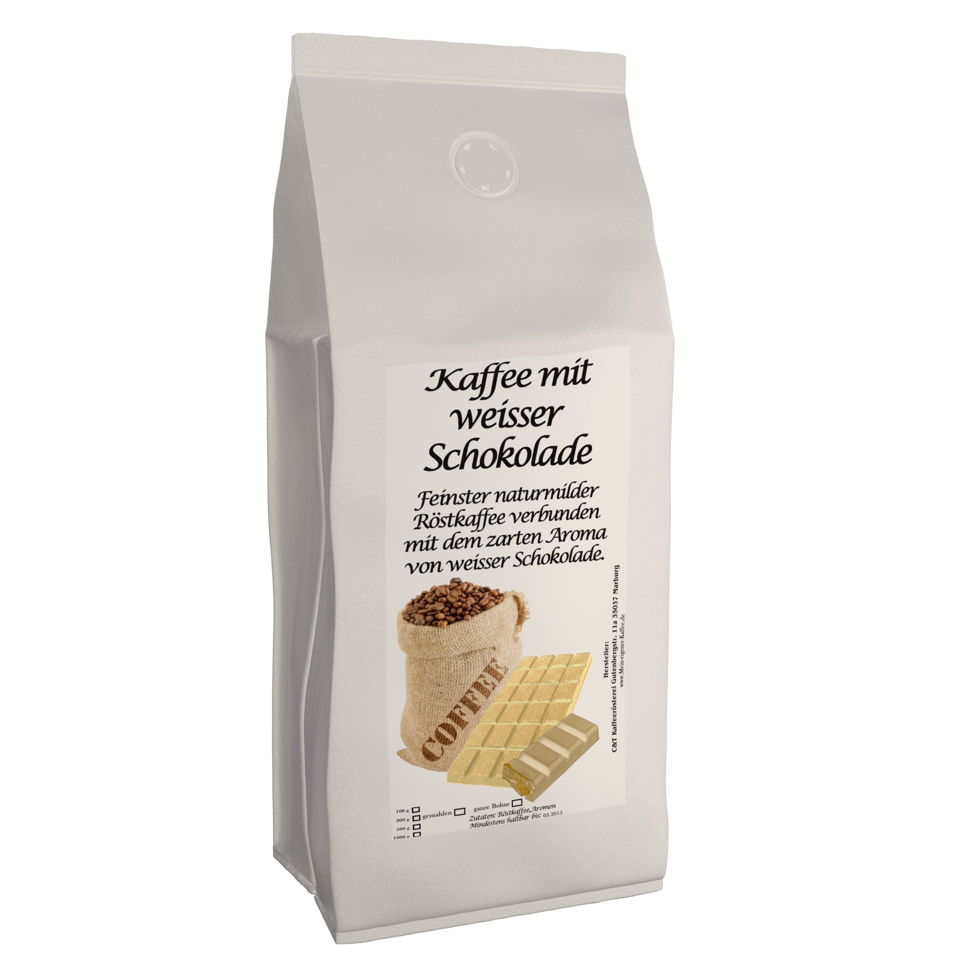 Aromakaffee - Café aromatisé - Chocolat blanc 1000 g - Fraîcheur moulue et torréfié par nous
