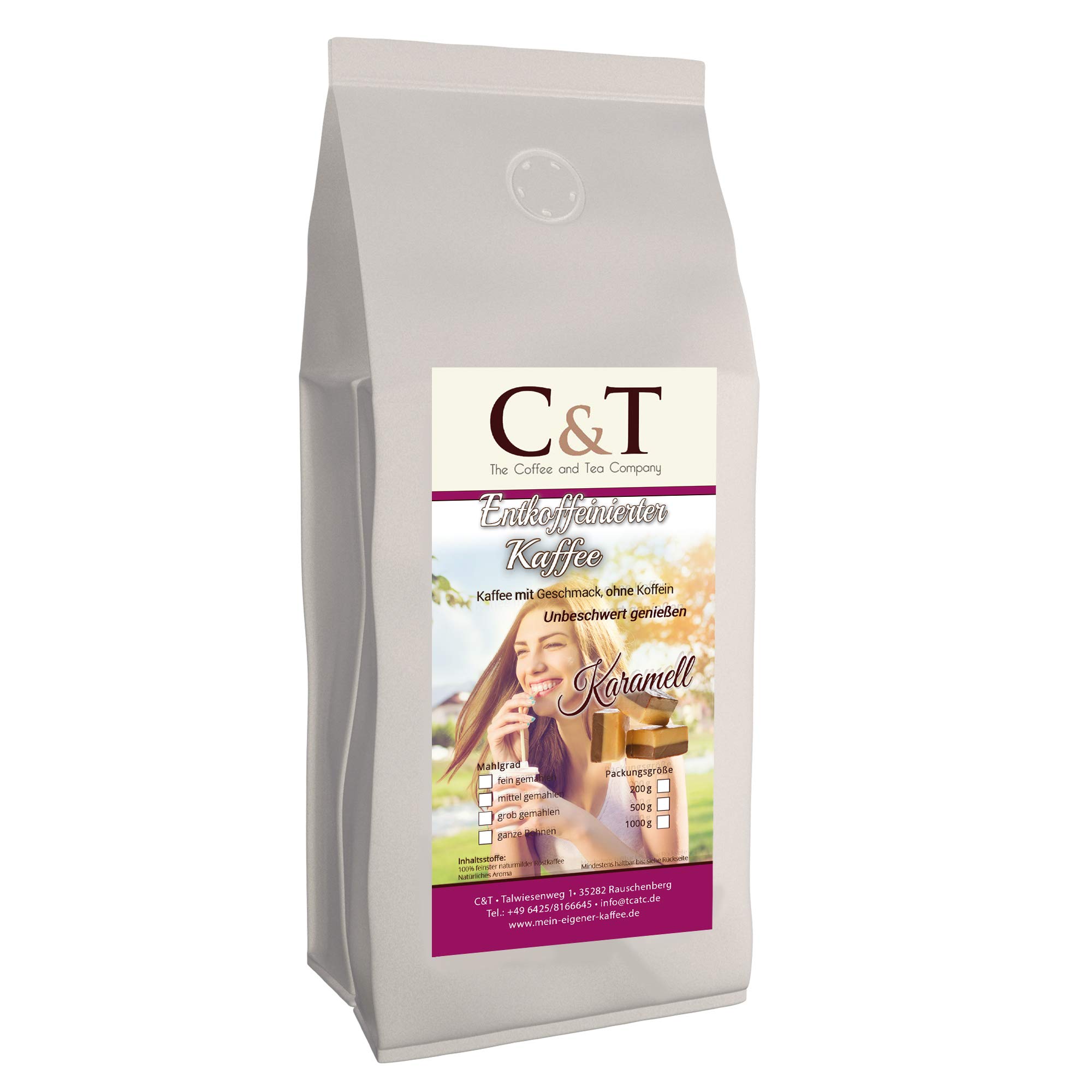 C&T Delicious coffee caffeine-free. Decaffeinated coffee with natural caramel flavor. 1000g