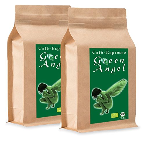 INGREDIENTS No additives, only 100 pure coffee PREPARATION According to the brewing method, 7-10g per cup with hot water 85-90 C. Bitterness is influenced by the grind, water temperature, and brewing time. Espresso - Ange Noir This coffee is hand-picked by small farmers. The beans are characterized by exceptionally high quality. Carefully refined in our facility, they develop their incomparable, low-acid character. This lightly roasted coffee impresses with its zest and delicate aroma. ✓ AROMATIC - The purest coffee, nothing but coffee, tested by our master roasters. Only the fullest aroma, low in acidity. ✓ MULTIFACETED – Whether filtered, brewed with a French press, or made with an espresso machine, our coffee tastes first-class with every brewing method. ✓ QUALITY: Thanks to long-term drum roasting by our master roasters, a stomach-friendly roast is created that is full of flavor. Our coffees are freshly roasted in small batches and are also freshly ground to order. ✓ PURE – No questionable additives or preservatives. Our coffees have a shelf life of 24 months, retaining their full roasted flavor.Grains de café bio « Green Angel » (2 x 1000 g de grains entiers) – 100 arabica – Café de qualité supérieure – Faible en acidité et digestible, doux et fraîchement torréfiésDESCRIPTION DU PRODUIT INGRÉDIENTS Sans additifs, seulement 100 pur café PRÉPARATION Selon la méthode de préparation 7-10g par tasse avec de l'eau chaude 85-90 C. L'amertume est influencée par le degré de broyage, la température de l'eau et le temps de contact. : Espresso - Ange Noir Ce café est cueilli à la main par de petits agriculteurs. Les haricots se caractérisent par une qualité particulièrement élevée. Soigneusement raffinés dans notre entreprise, ils déploient leur caractère incomparable, faible en acidité. Ce café légèrement torréfié convainc par son piquant et son arôme fin. ✓ AROMATIQUE - Le plus pur, le café et rien d'autre testé par nos maîtres de torréfaction. Seul l'arôme le plus complet, faible en acide. ✓ MULTIFACETTE – Qu'il soit filtré, de la presse française ou de la machine à expresso: notre café a un goût de première classe avec toutes les méthodes de préparation. ✓ QUALITÉ: grâce à une torréfaction à long terme dans le torréfacteur de tambour par nos maîtres de rôtissage, une torréfaction protectrice de l'estomac est créée, qui est pleine de goût. Nos cafés sont rôtis frais en petits lots et sont également fraîchement moulus sur commande. ✓ PUR - Pas d'additifs ou de conservateurs douteux. Nos cafés ont une durée de conservation de 24 mois pleine de saveur de torréfaction.