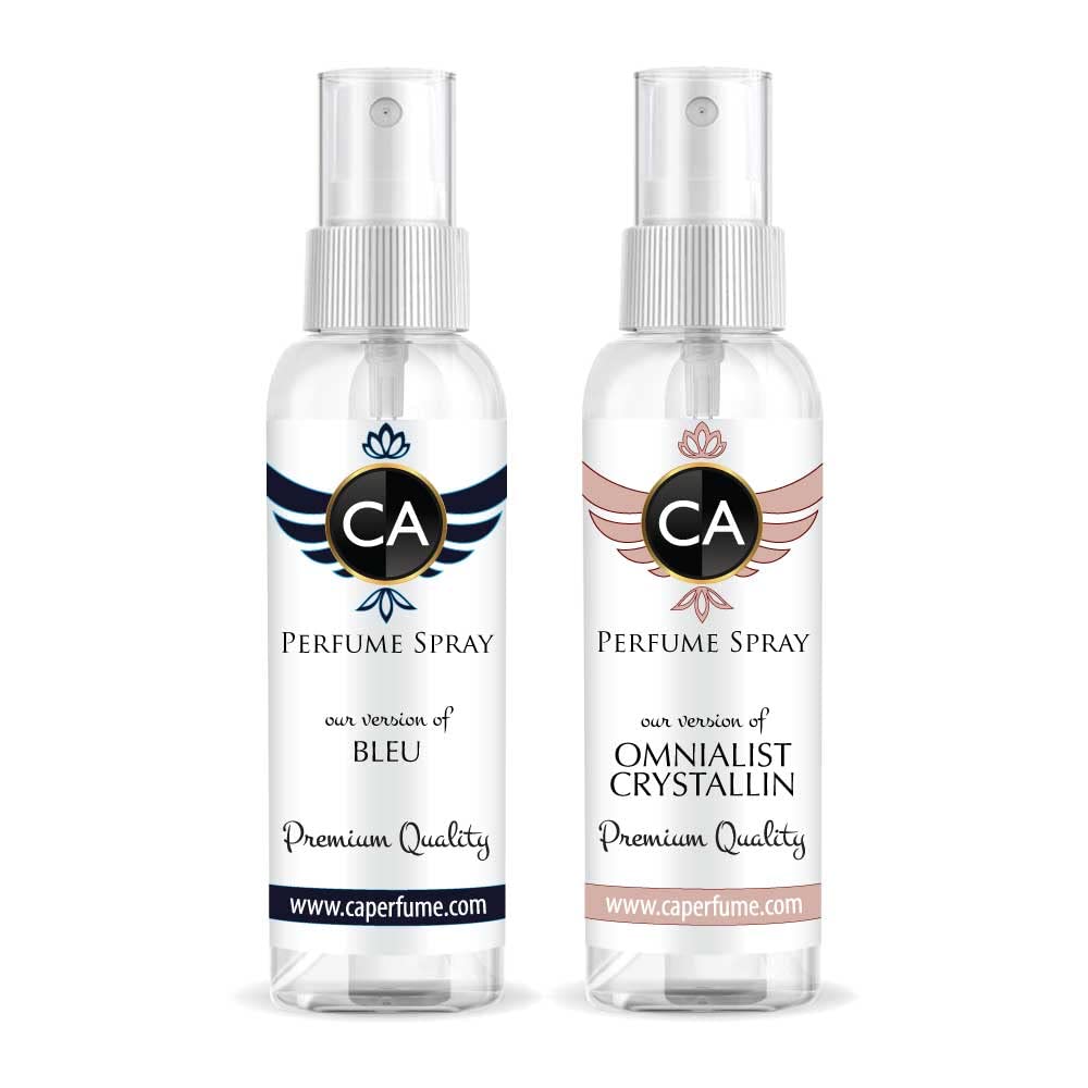 CA Perfume Impression of (Bleu + Omnialist Crystalline) Travel Size Sample Fragrance Refillable Atomizer Long Lasting Eau de Parfum (Cologne) Sprayer / 2 Fl Oz/ 60 ml Bleu + Omnia Crystalline