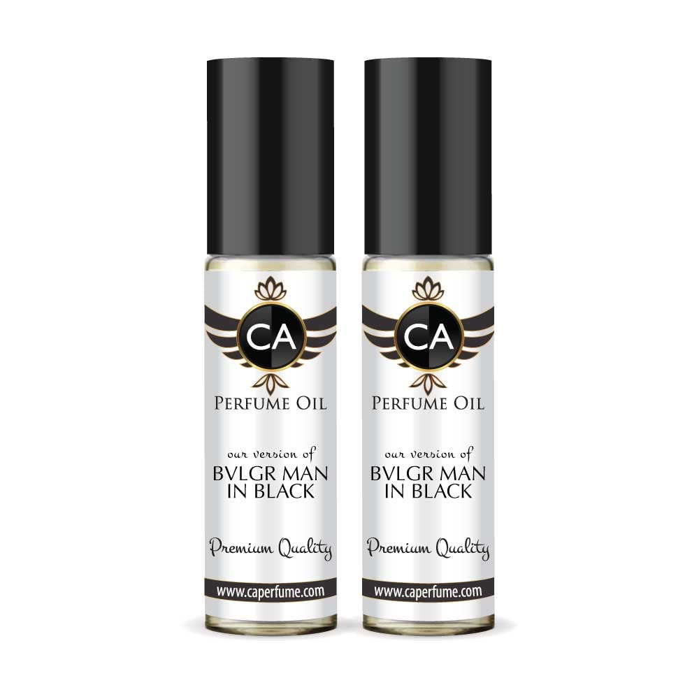 CA Perfume Impression of Bvlgr Man In Black For Men Replica Fragrance Body Oil Dupes Alcohol-Free Essential Aromatherapy Sample Travel Size Concentrated Long Lasting Attar Roll-On 0.3 Fl Oz-X2