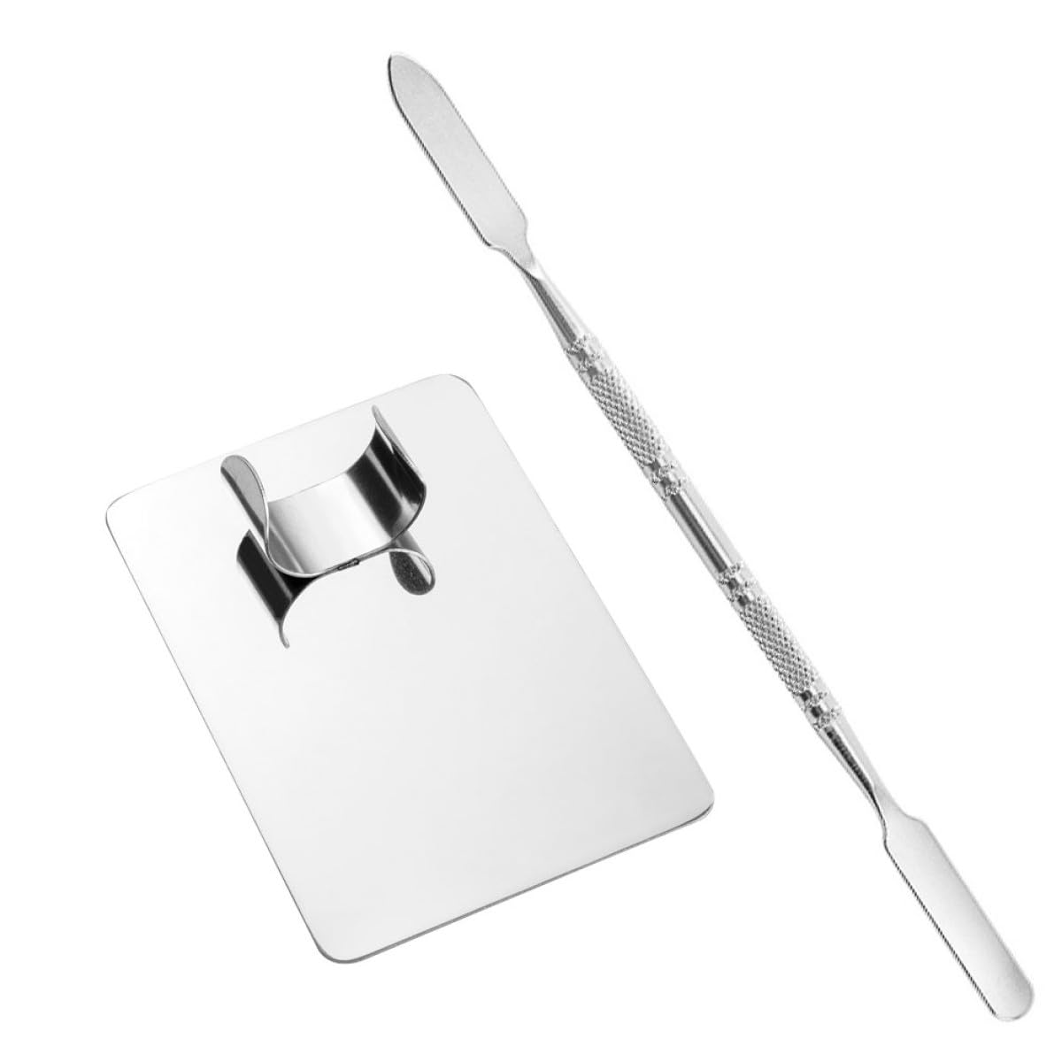 Cabilock Palette de Mélange Fond Teint en Acier Inoxydable, Outil Spatule Plateau Résistant pour Maquillage Quotidien et Artistique