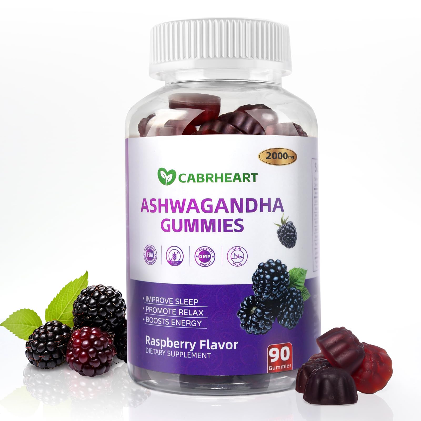 CABRHEART Ashwagandha Gummies for Women Men,Stress Relief,Immune Support,Calm Mood,Melatonin,2000mg Ashwagandha Root Extract Supplements Gummy,90 Count