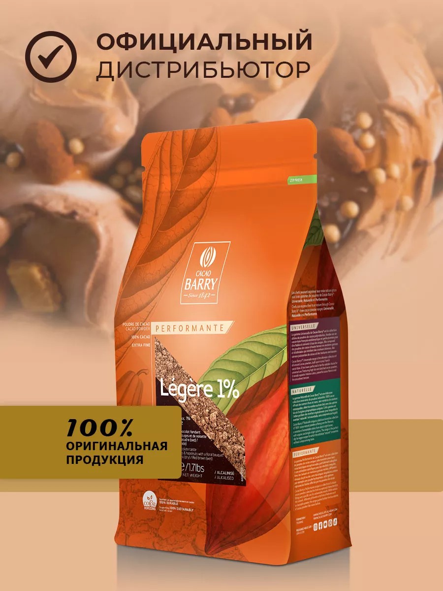 Cacao Barry Какао порошок натуральный обезжиренный Legere 1% 0,75кг